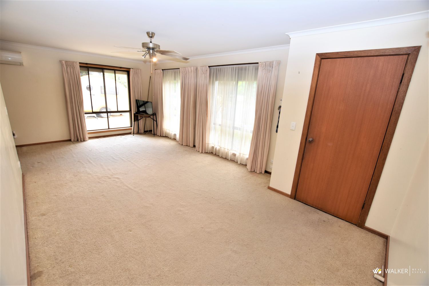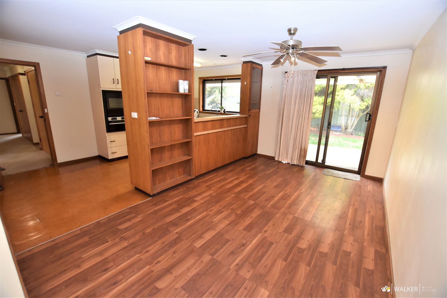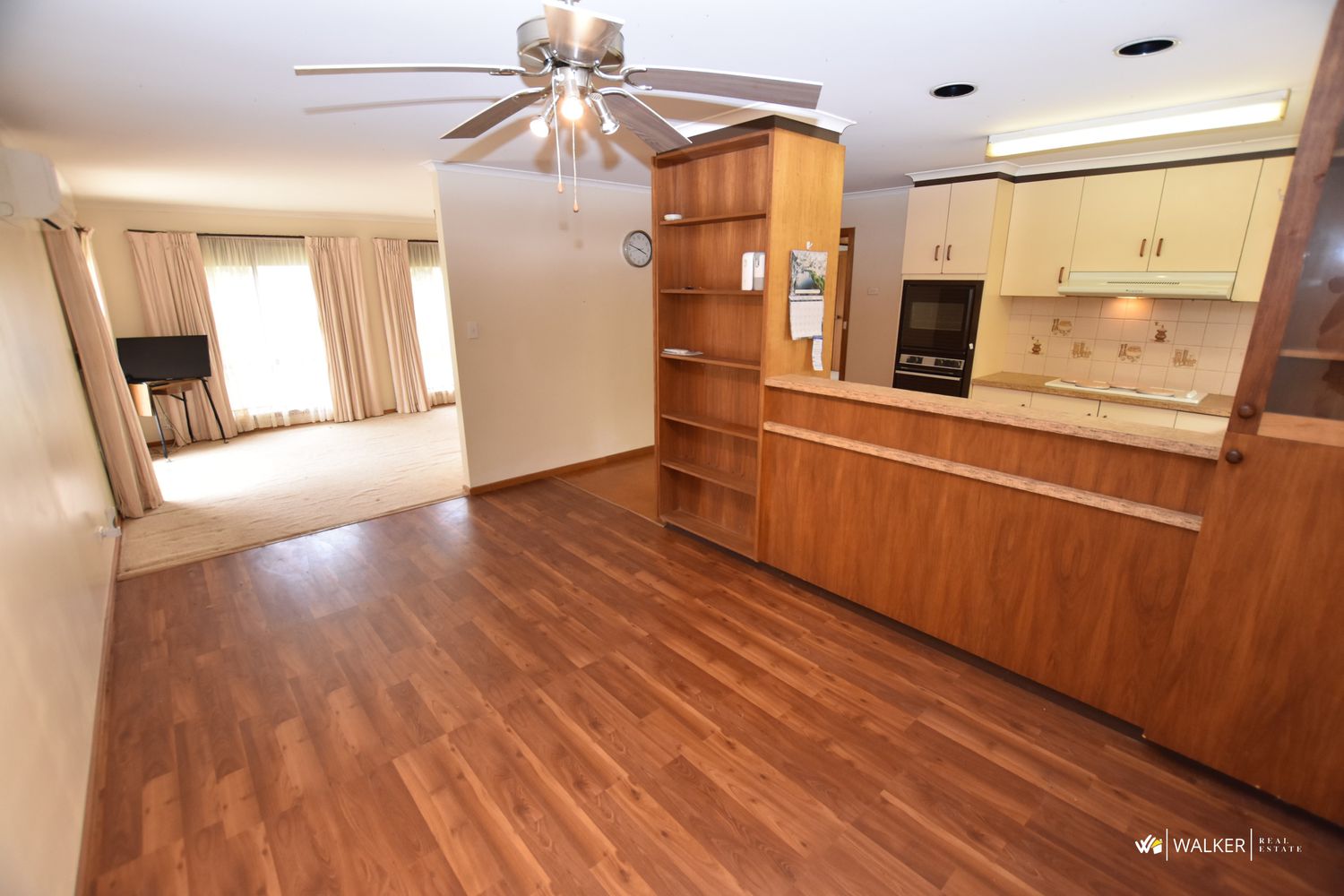 The home features an open plan with lounge, kitchen and dining areas that are comforted by a split system reverse cycle air conditioner