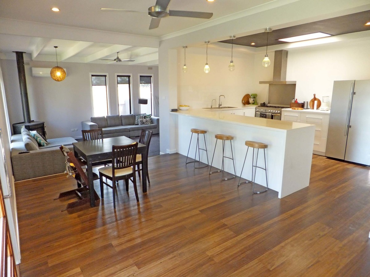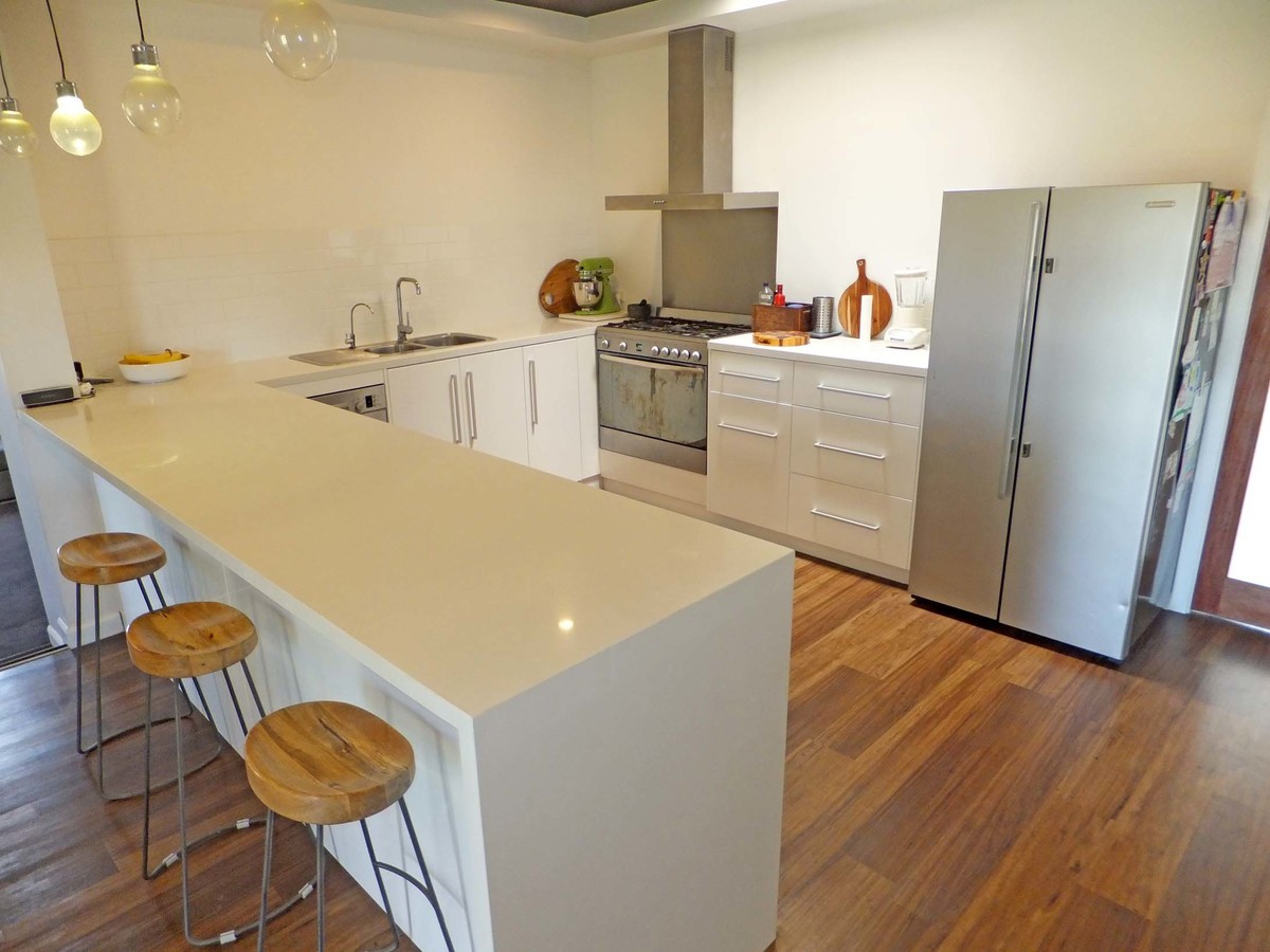 The stunning kitchen with Caesar stone bench tops and stainless steel 900mm dual fuel stove truly is the hub of the home, while the S/S R/C A/C and wood heater creates a comfortable environment to the spacious lounge area