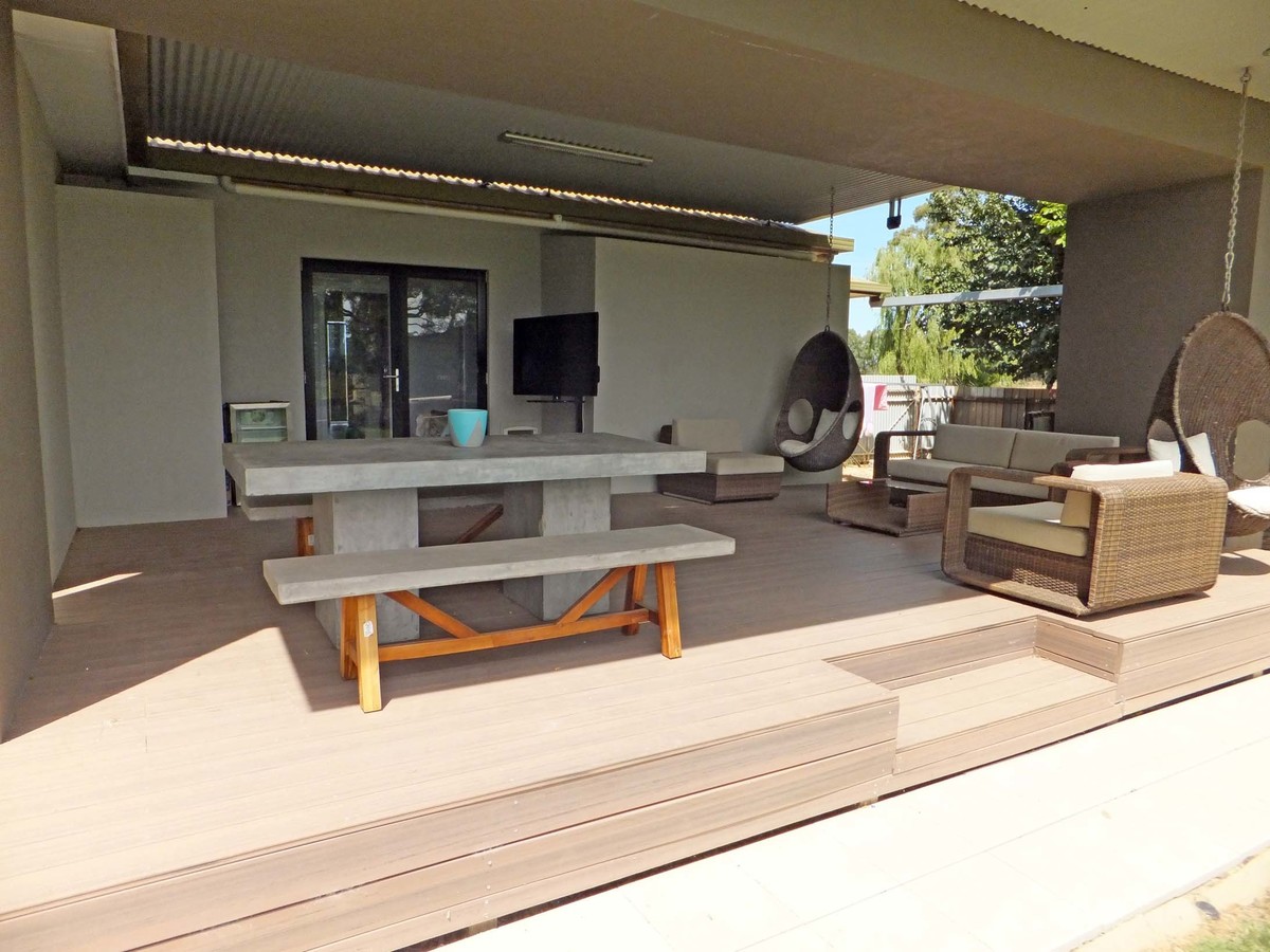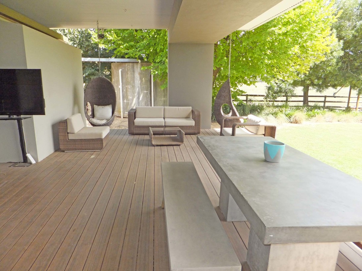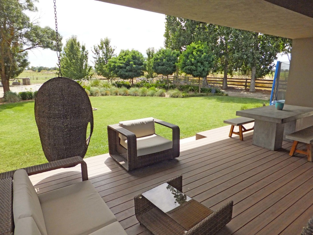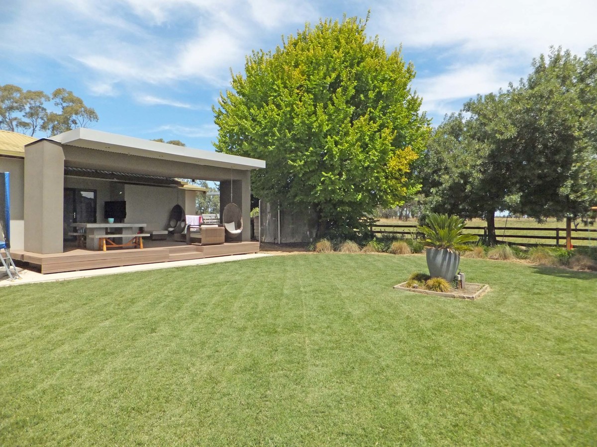 Bi-fold doors provide access to an enviable decked entertaining area that overlooks the immaculate surrounds