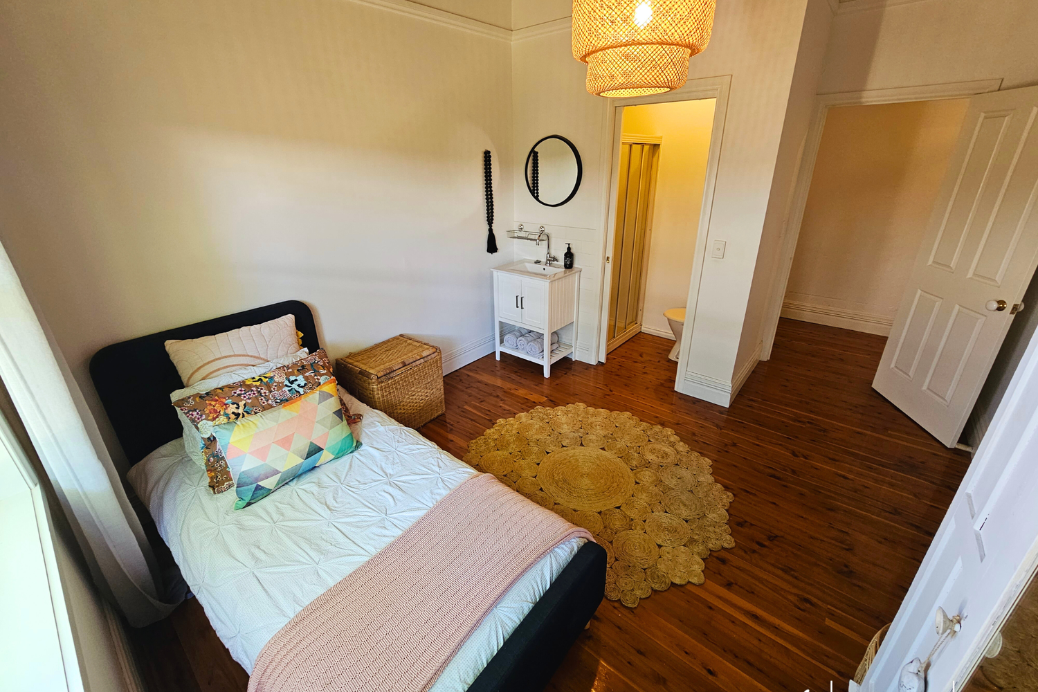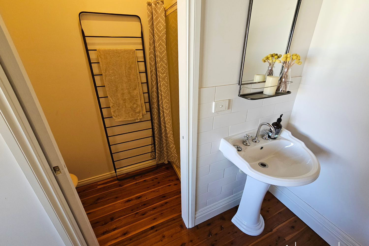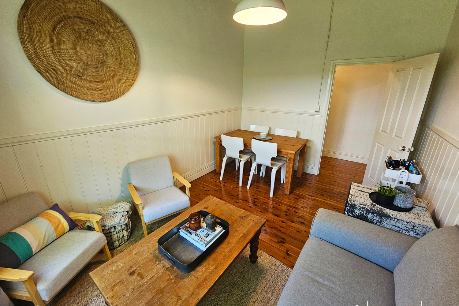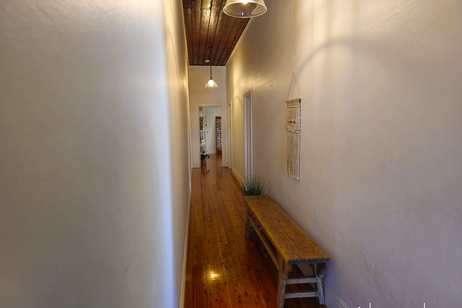 As you enter, you'll be captivated by the stunning Cyprus pine flooring that flows throughout the home, exuding a timeless appeal while the pine-lined ceilings also add a touch of style and character to every room.