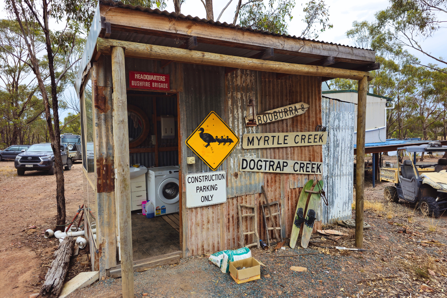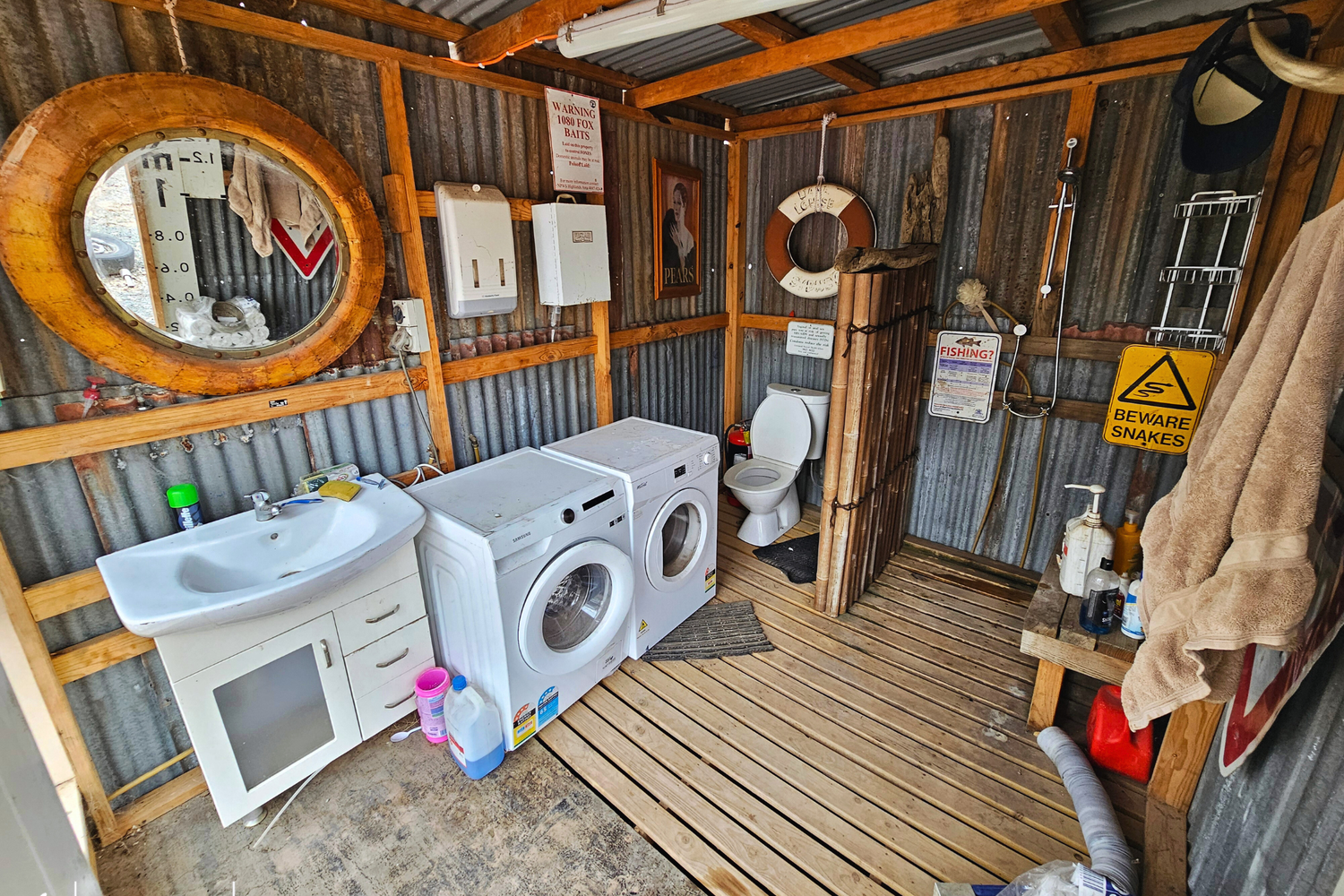 The property boasts a solar power setup with two storage batteries, rainwater tanks, and a septic tank, setting you up for sustainable off-grid living. Outside the dwelling you will find an outhouse with bathroom and laundry facilities adding a touch of convenience to the rustic lifestyle.