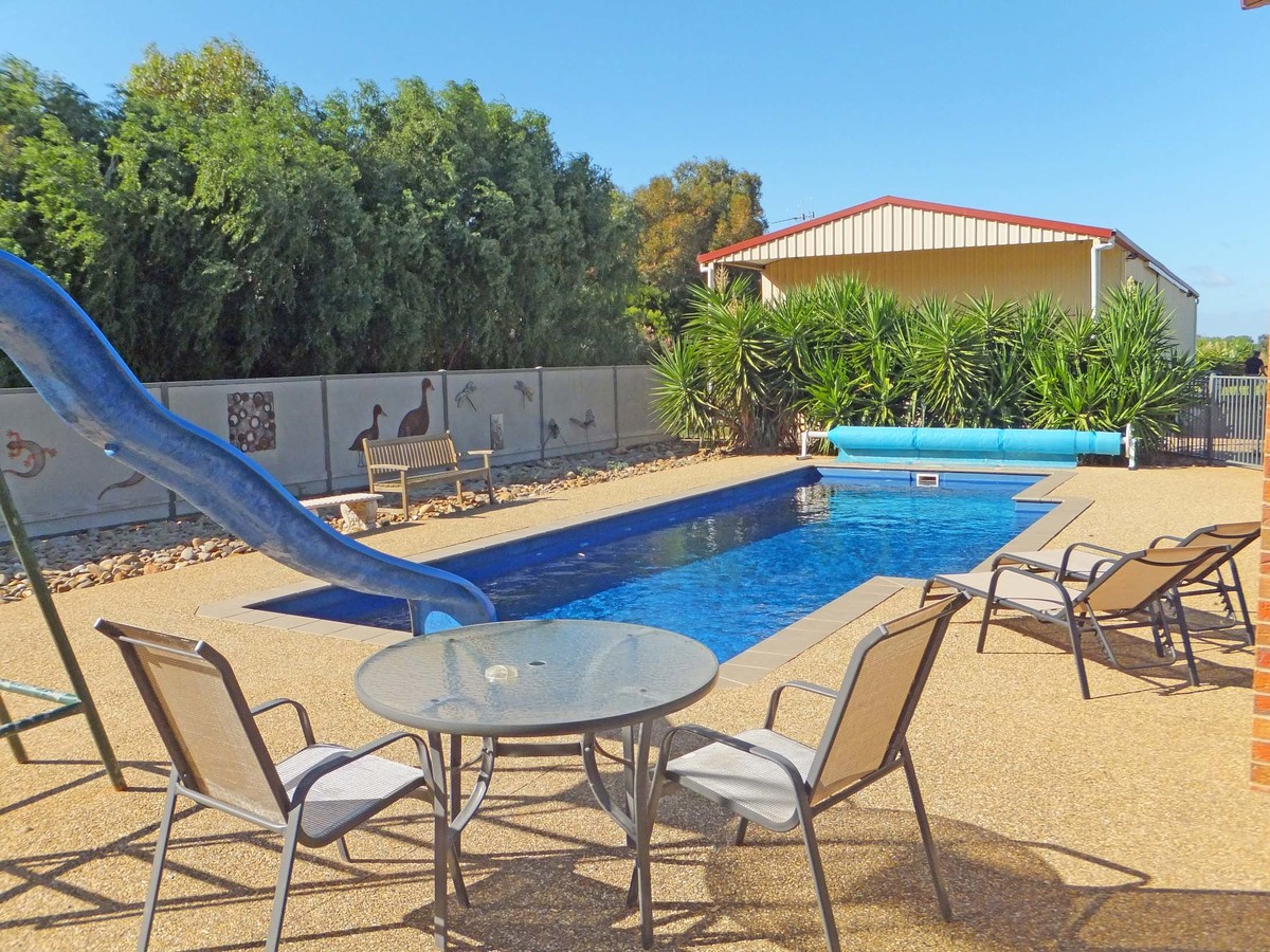 An inviting pergola area overlooks the 11m solar heated in ground pool and the fenced off house yard is ideal for kids and pets