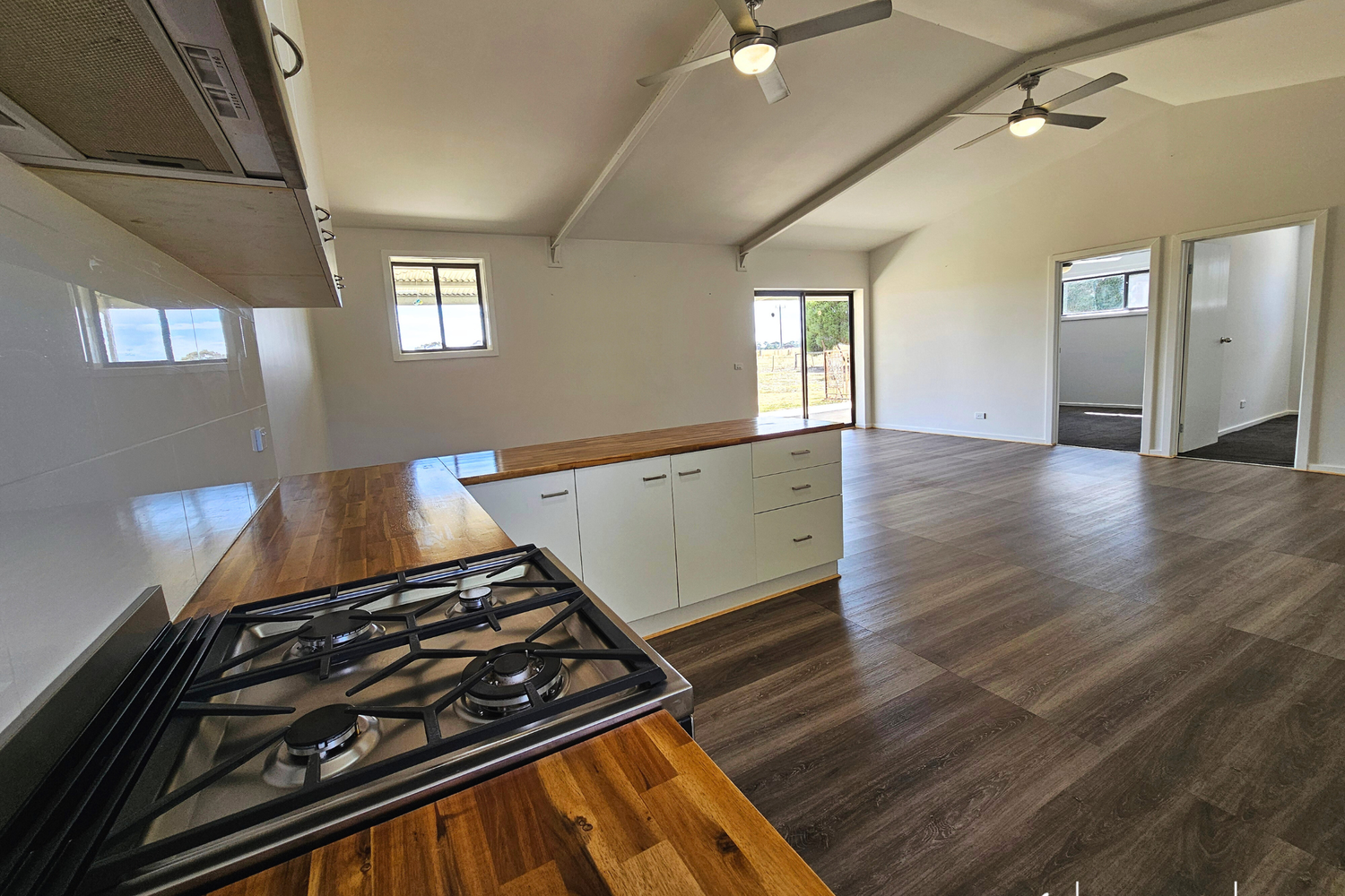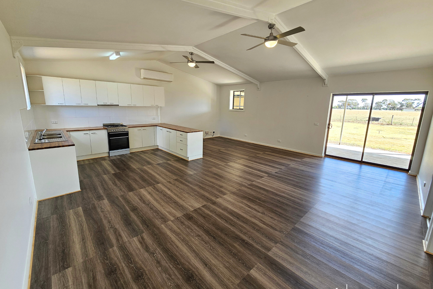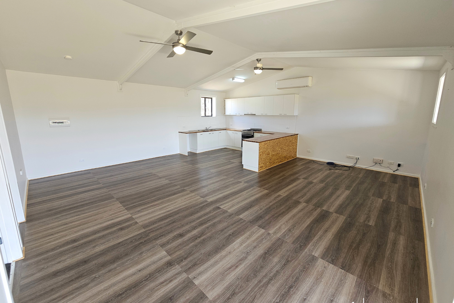 Set amongst established leafy surrounds is a tastefully converted 11m x 7.5m shed, where rustic charm meets contemporary living. Discover a cozy 2-bedroom weekender accommodation with an inviting open-plan layout, a sleek modern kitchen, and all-season comfort provided by the split-system reverse cycle air conditioner and two ceiling fans.