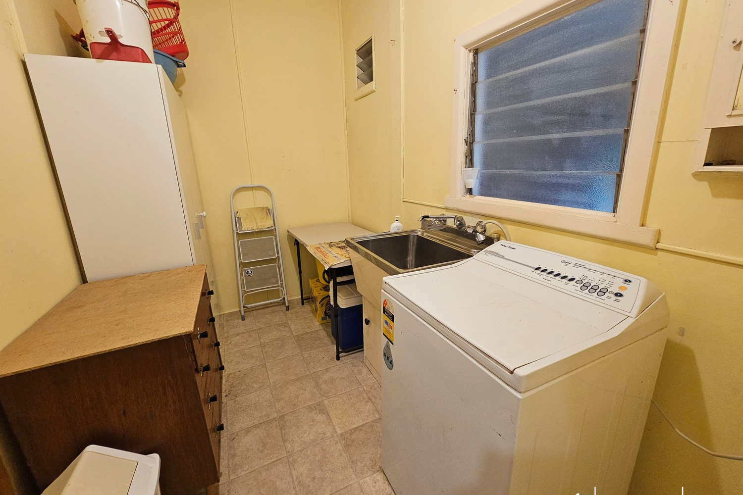 As you enter, a spacious Living room beckons, seamlessly flowing into the inviting Kitchen/Meals area adorned with ample cupboard space.