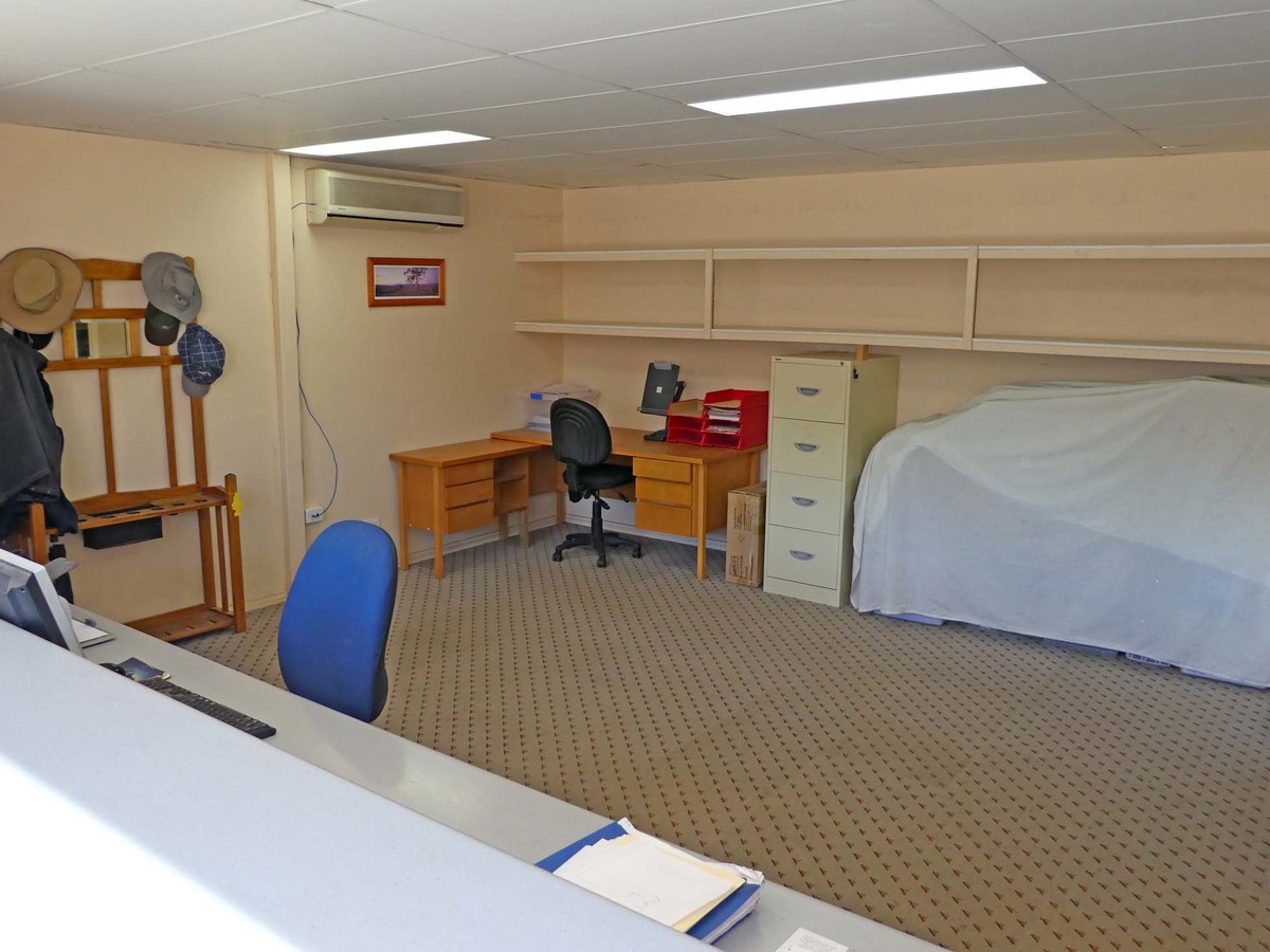 Half the shed is currently fitted out as an operational office with split system reverse cycle air conditioner and amenities areas