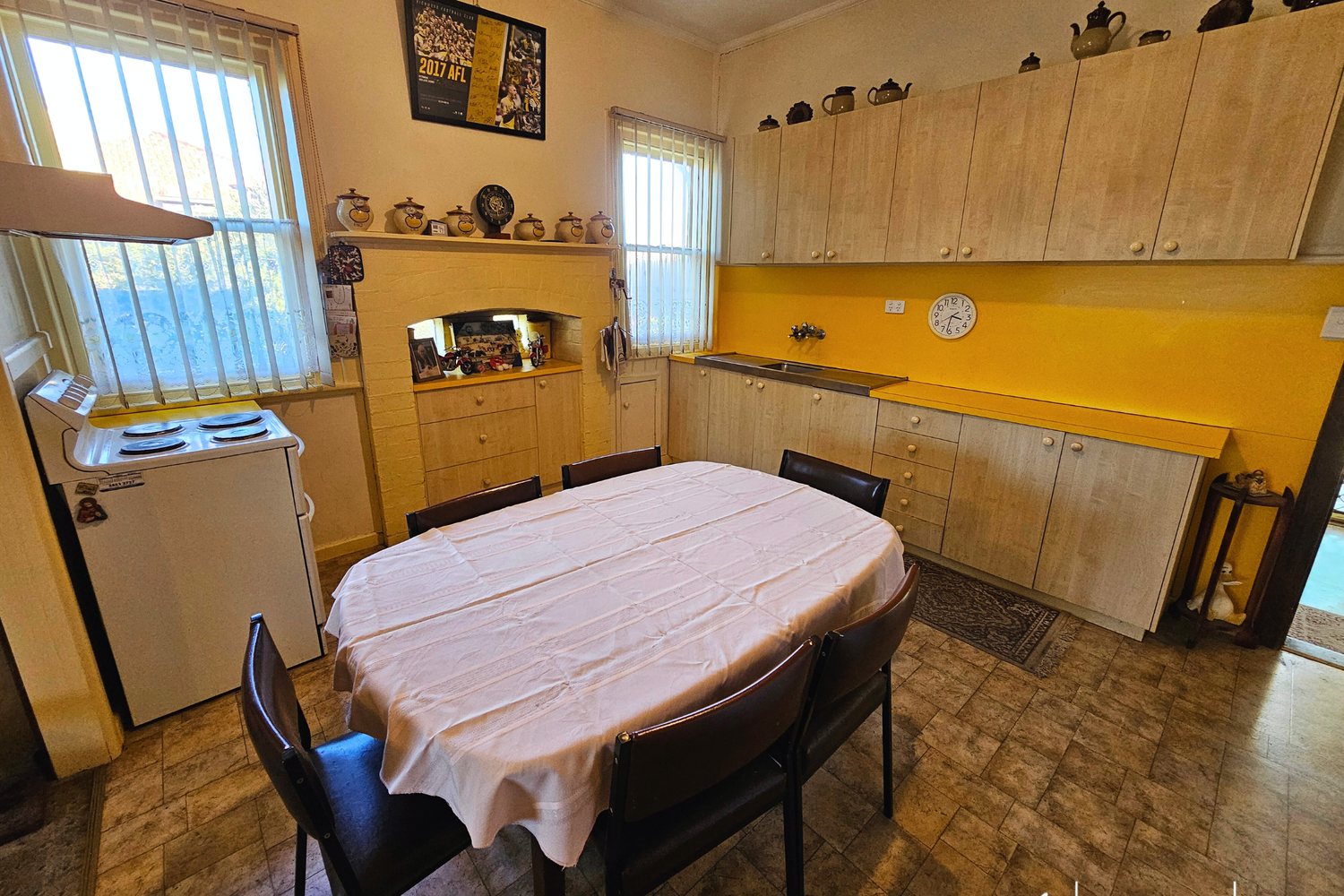 The heart of the home beckons with its open-plan kitchen and lounge space, where laughter and memories are sure to be made. Feel that cosy embrace of the lounge, complete with an air conditioner and a gas log fire, perfect for those cool winter evenings.