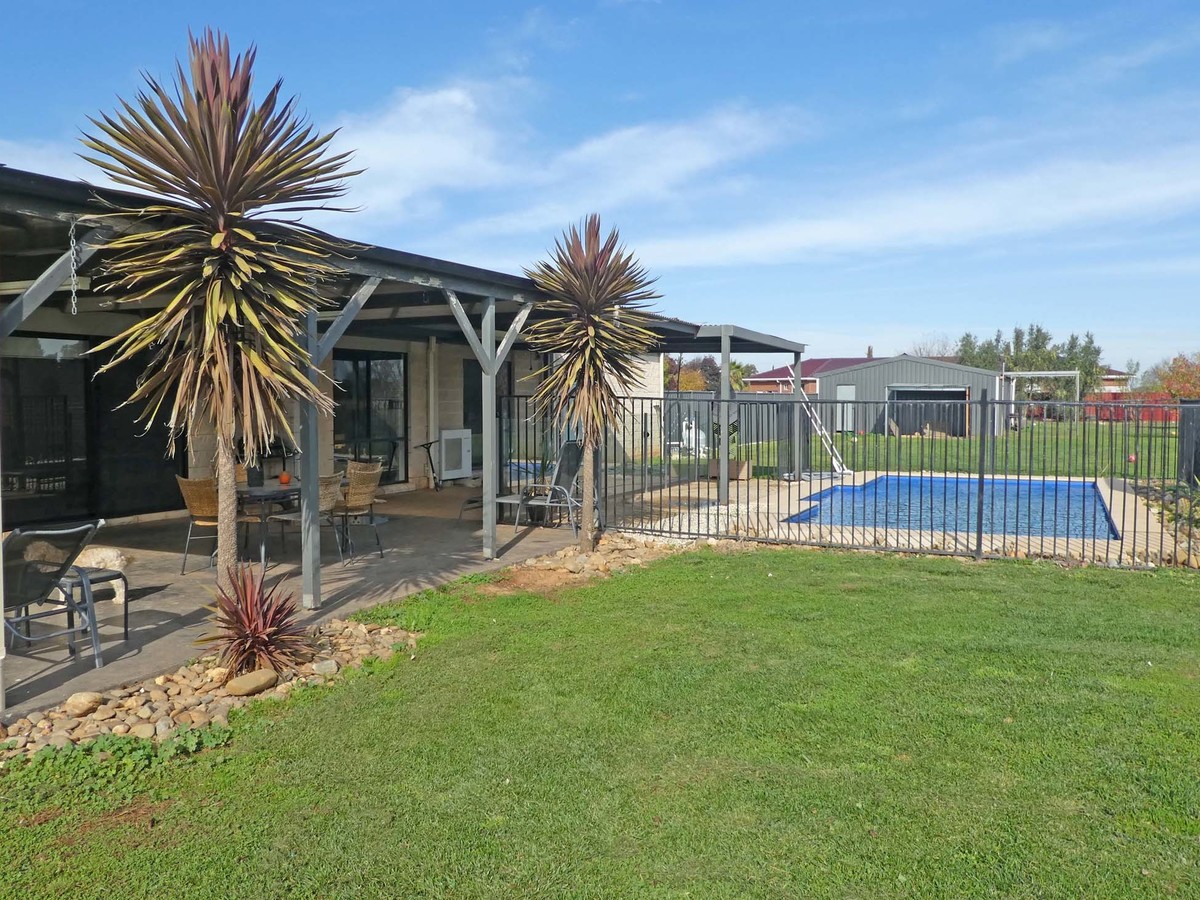 Convenience is added to the property via double auto garage, 12m x 7.6m colorbond shed, satellite NBN plus both town and rural water connections