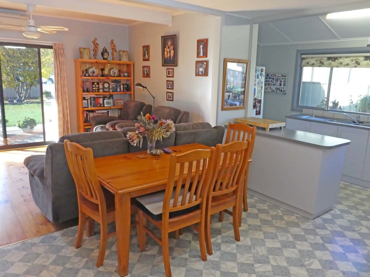 Outdoors the property features an open entertaining area plus a front verandah, single garage and a 6m x 3m lockable shed