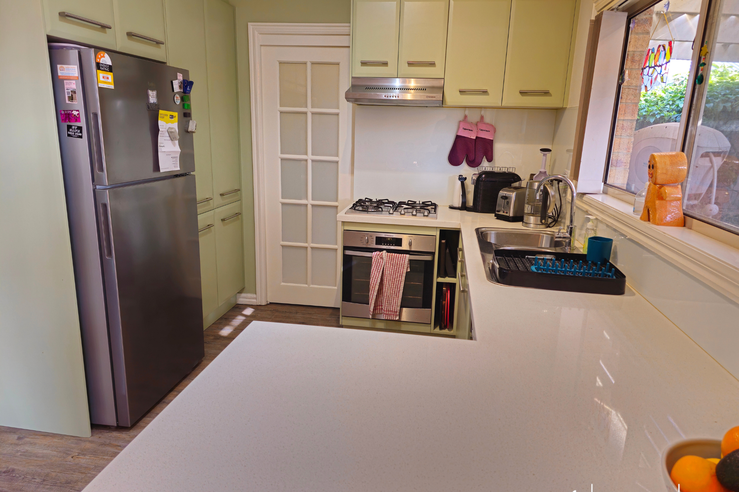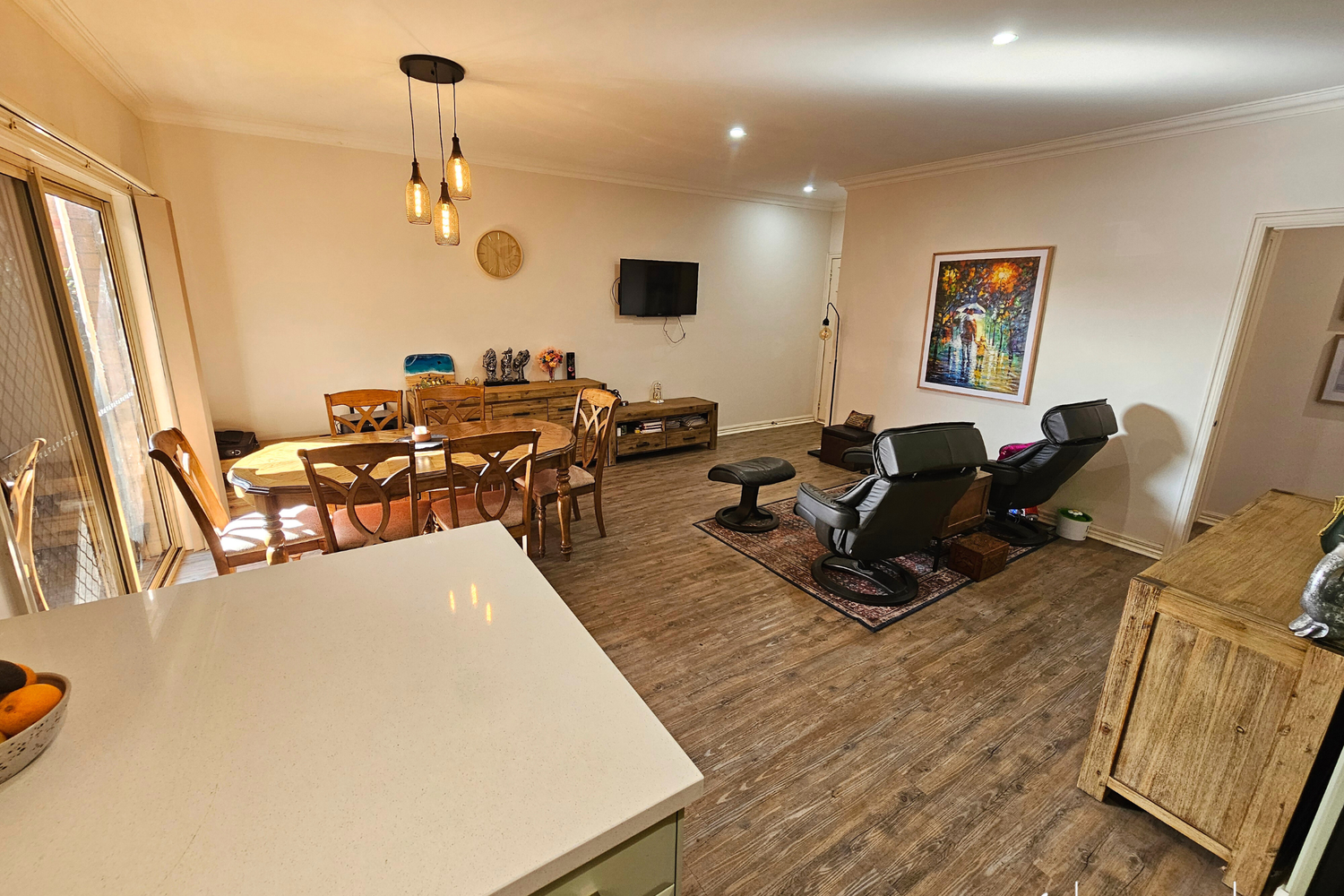 Upon entry, you’re greeted by the spacious Open Plan Design blending the Modern Kitchen, Dining, and Living areas. The Kitchen boasts a contemporary touch with as-new appliances and exquisite 40mm stone benchtops, inviting you to unleash your inner chef.