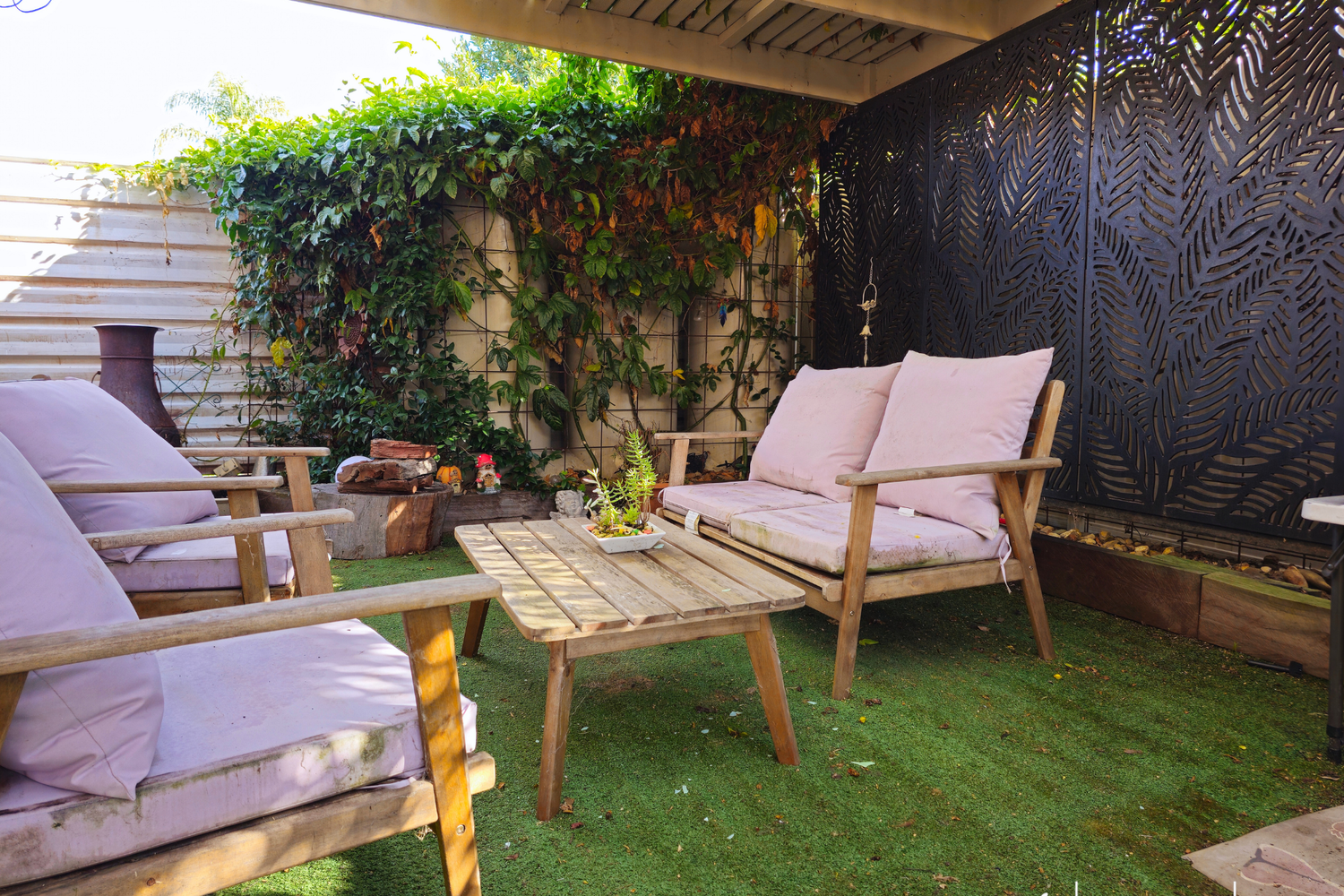 Outside, discover a Single Auto Garage providing convenient parking, while the Outdoor Pergola Area with synthetic lawn offers a retreat for relaxation and/or entertainment, all with minimal outdoor maintenance required.