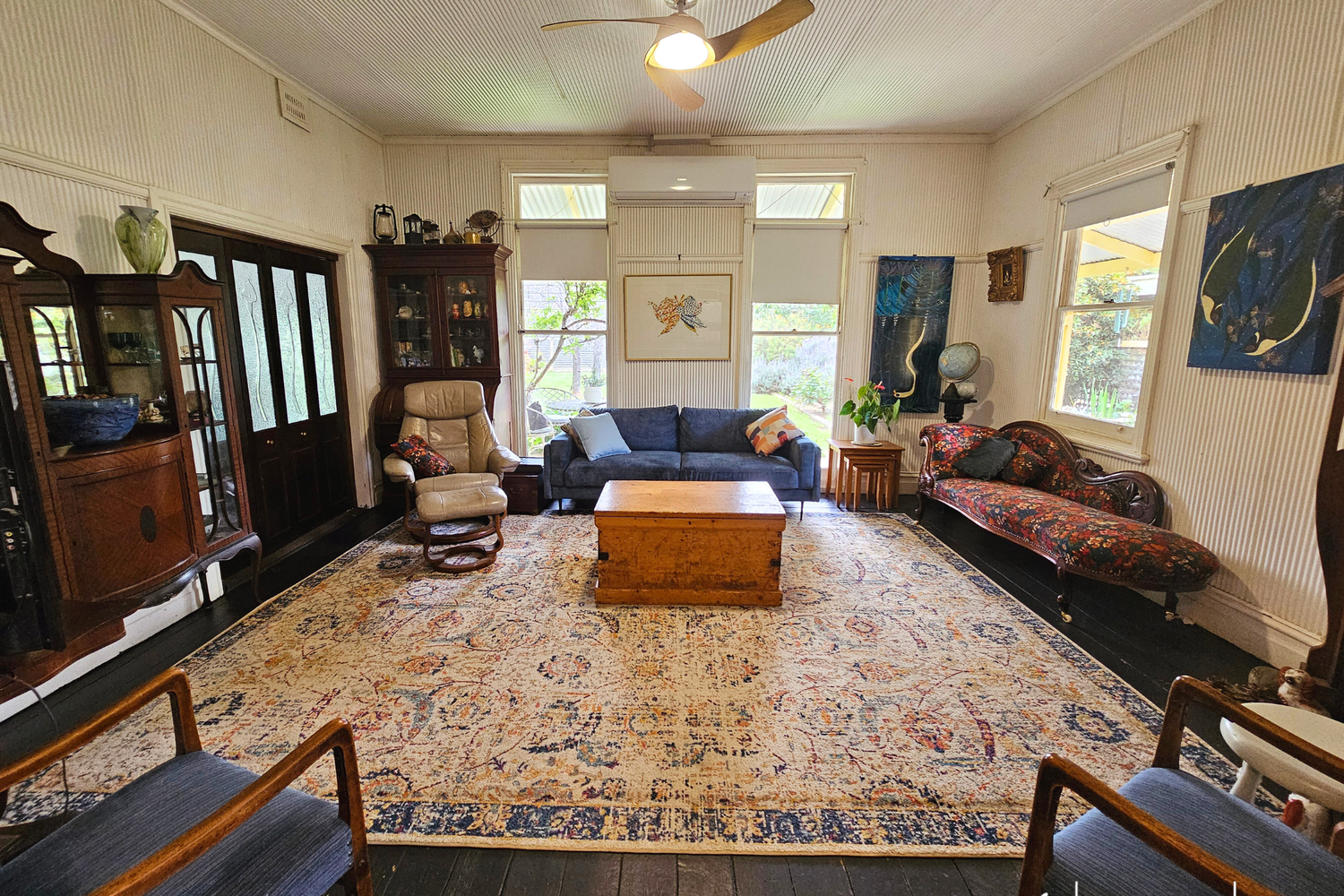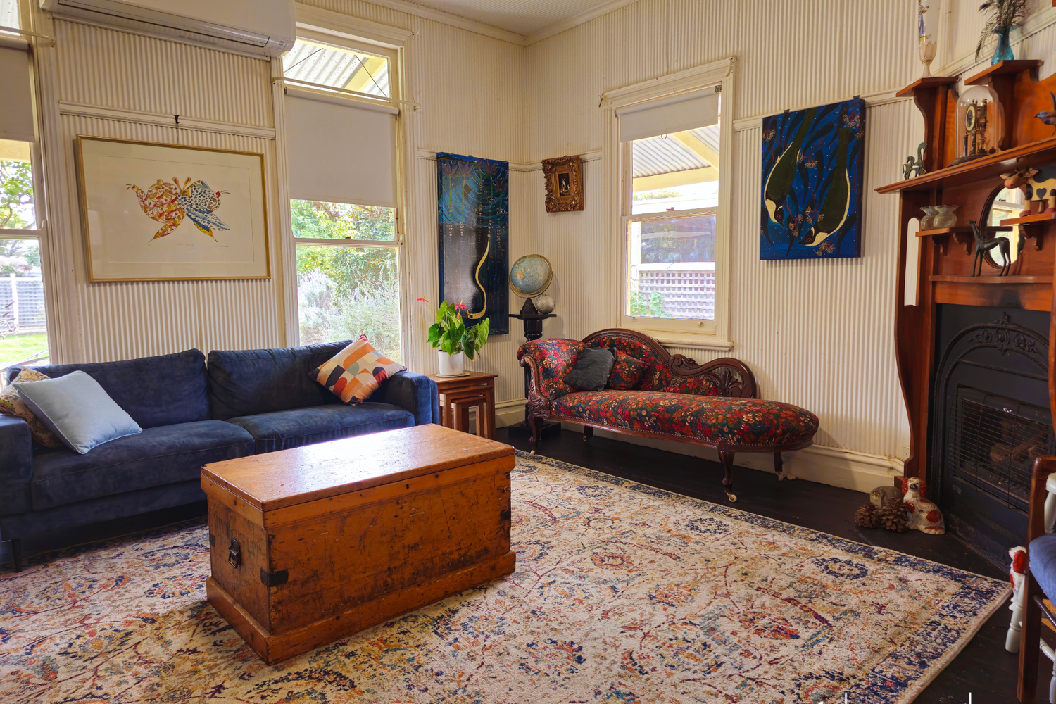 Stay comfortable year-round with two split system reverse cycle air-conditioners and a cozy gas log fire, creating an inviting atmosphere no matter the season.