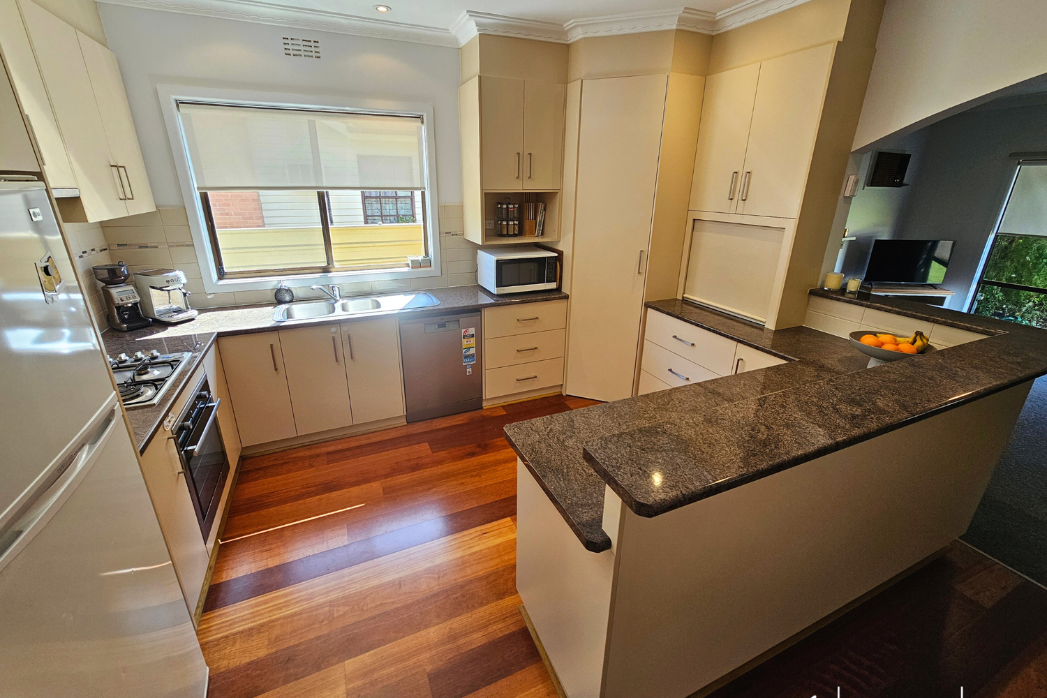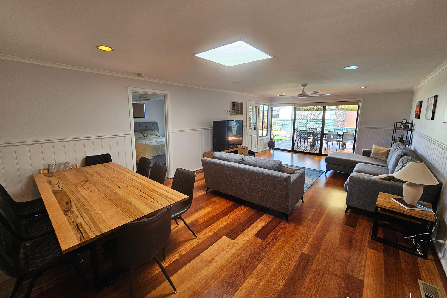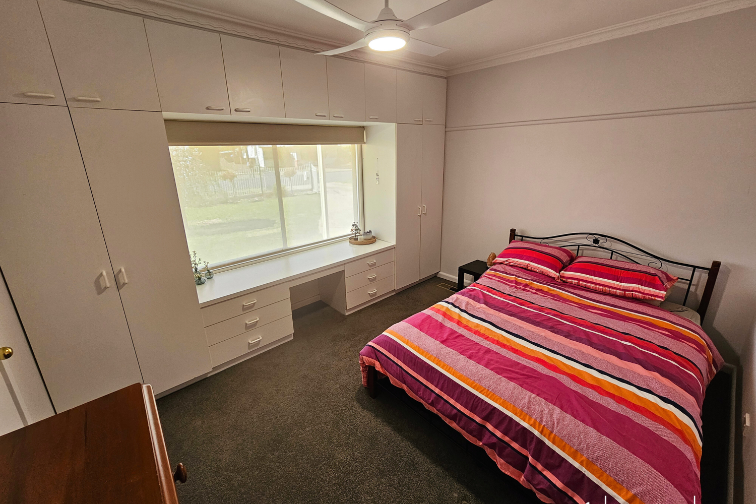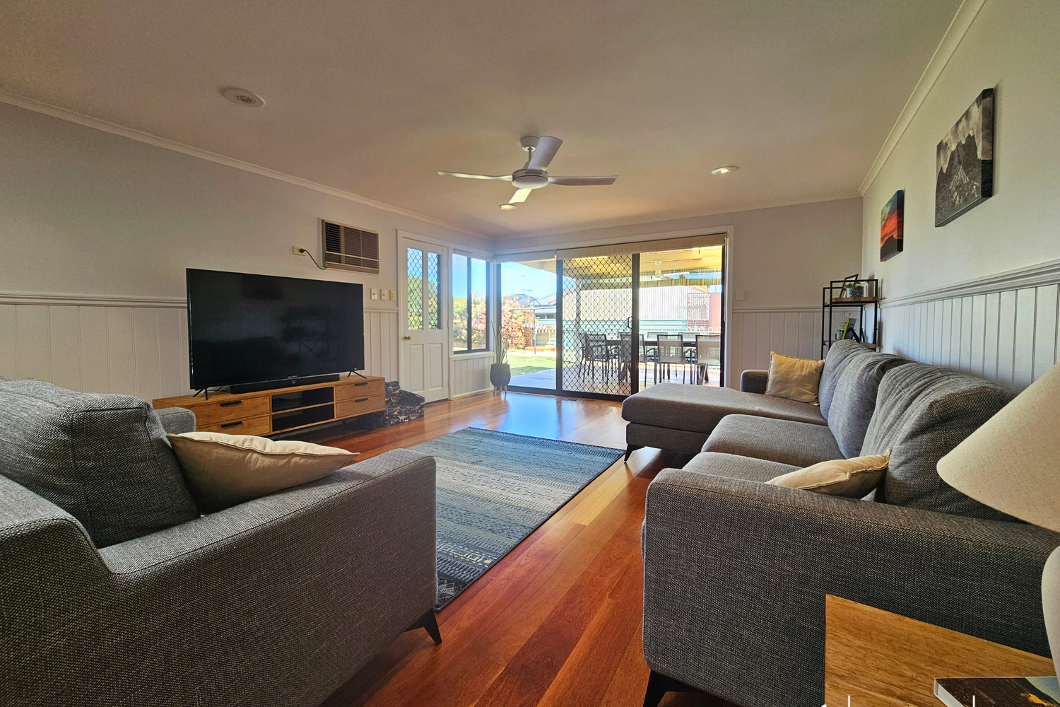 Stay comfortable year-round with ducted evaporative cooling and gas heating, complemented by two wall air conditioners and ceiling fans throughout the home.