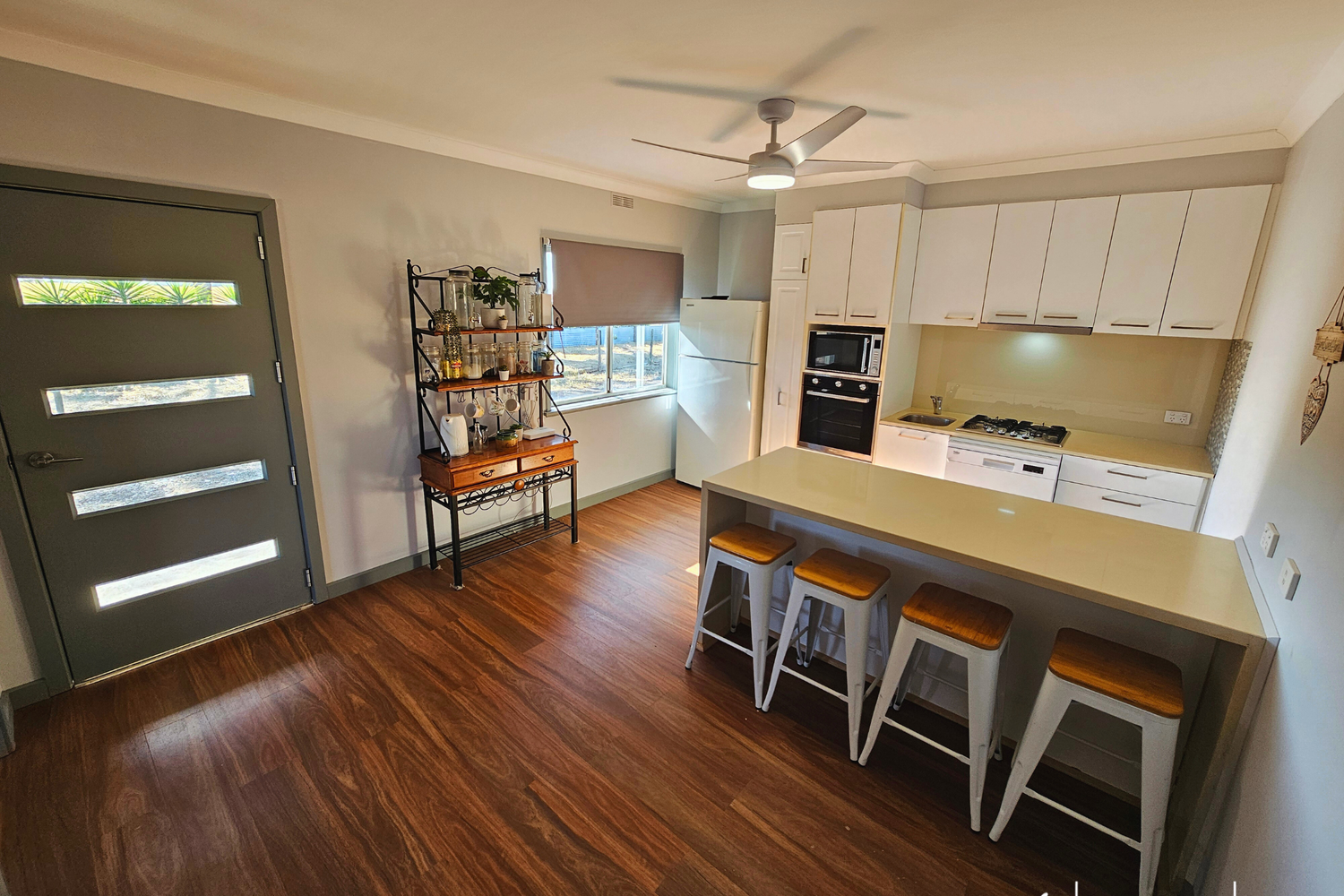 As you enter, you’ll be greeted by a modern kitchen featuring stone benchtops, designed for both functionality and style. The newly renovated bathroom and laundry space adds to the home's modern amenities, ensuring everyday convenience. The spacious bedroom is a peaceful haven, complete with a ceiling fan and a split system reverse cycle air conditioner, guaranteeing comfort all year-round.