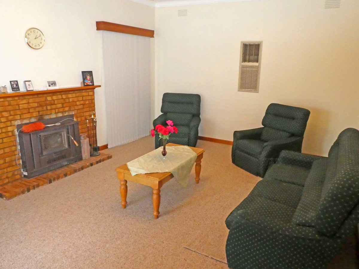 Features a comfortable living room with split system reverse cycle air conditioner and wood heater