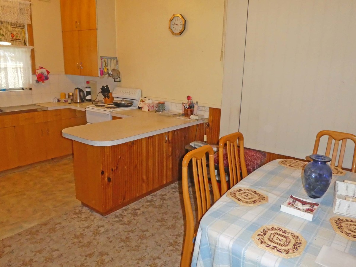 The kitchen has plenty of bench space & a dining area