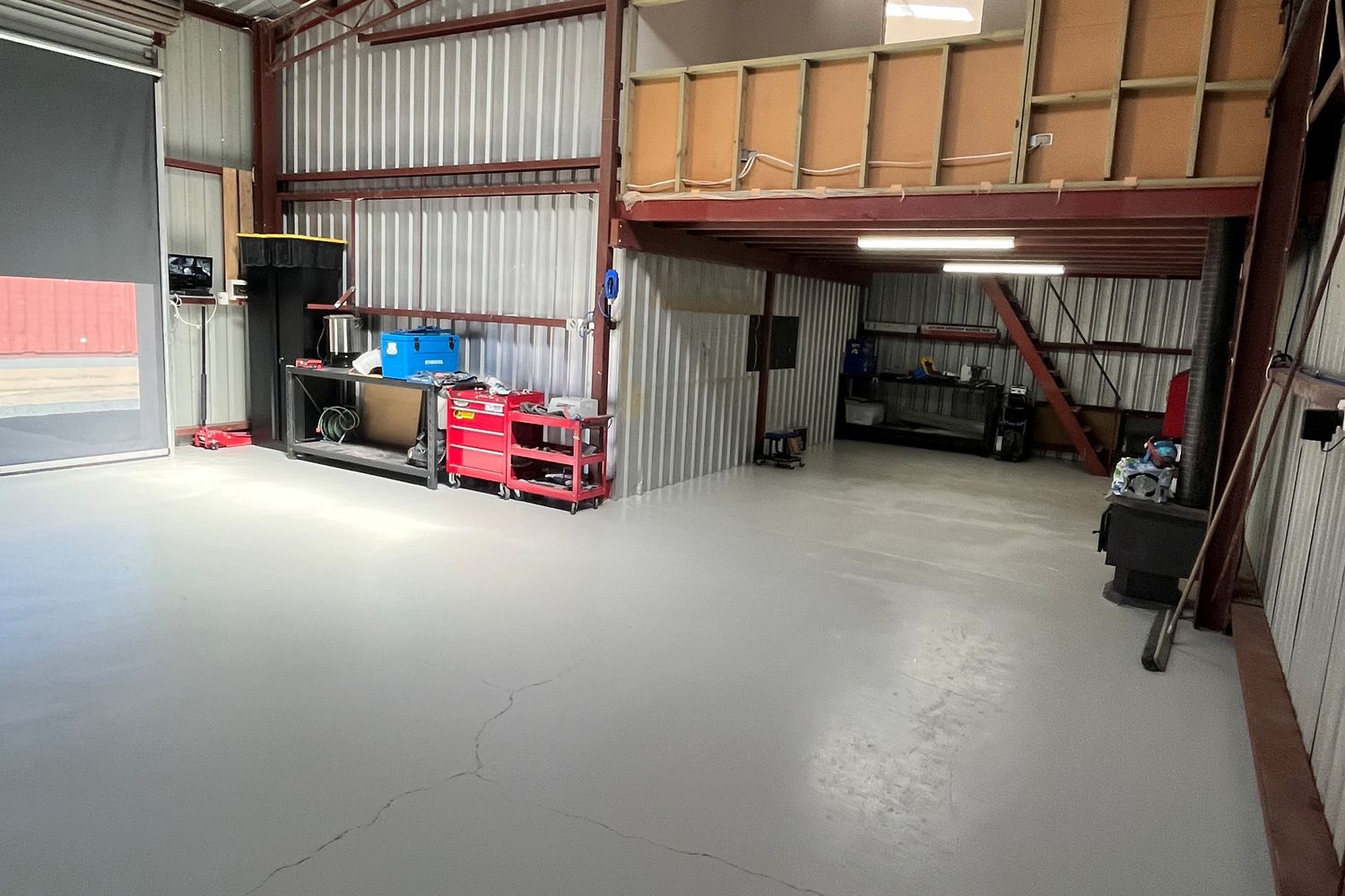 The shed is easily accessed through a 3.6m x 3m high commercial roller door and side access door