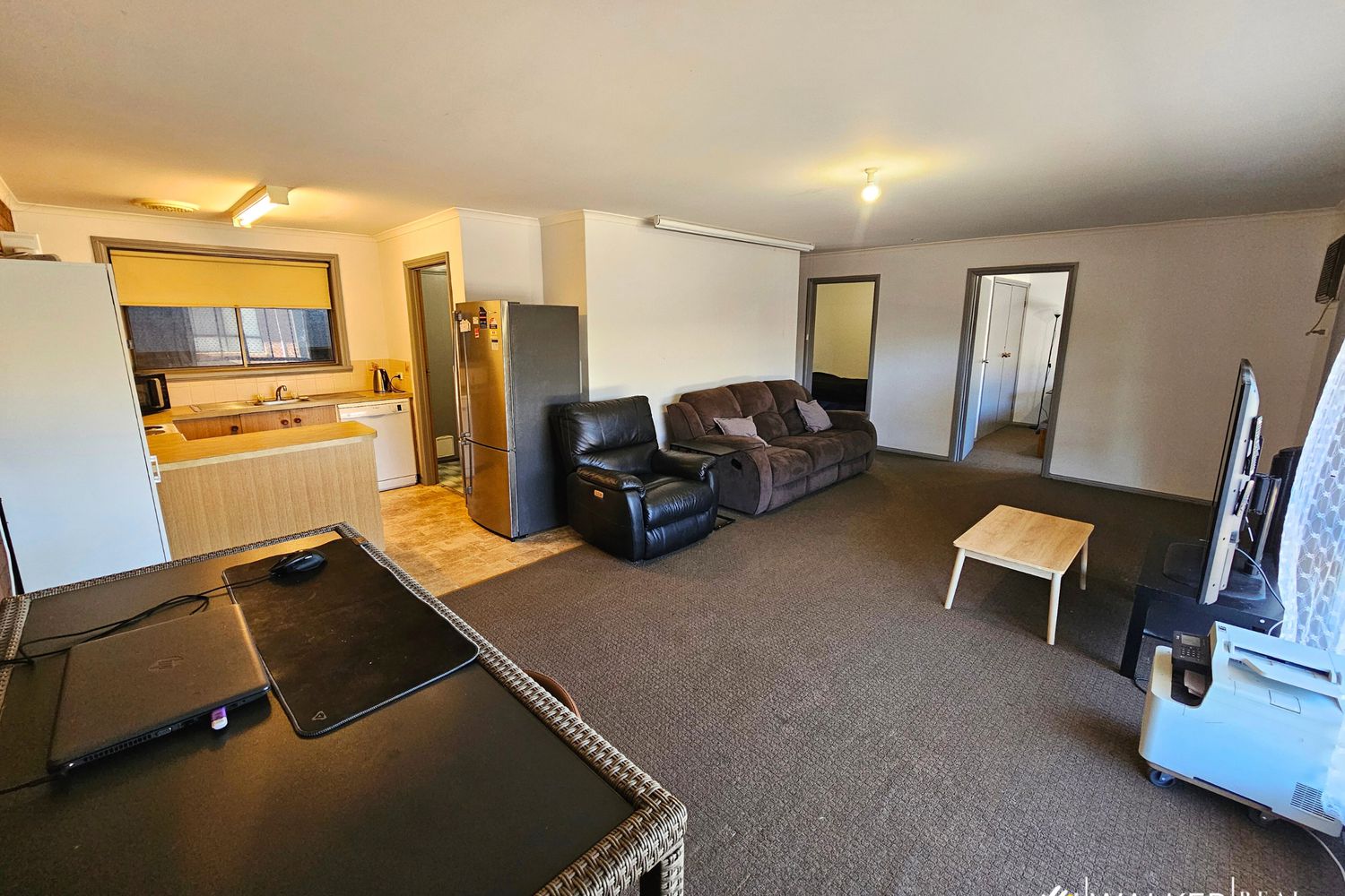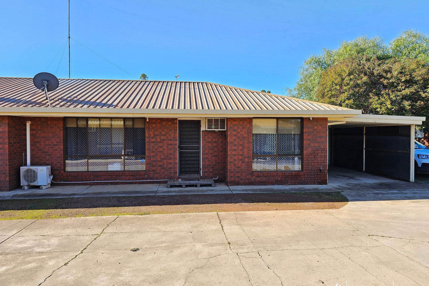 Step inside to a light-filled open plan living area, complete with two air-conditioners to keep you comfortable year-round. Both bedrooms are equipped with built-in robes, adding to the home’s practical layout.