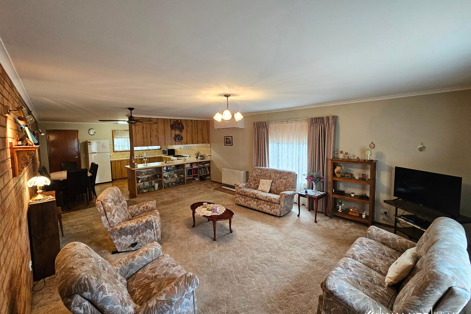 Step inside to discover a bright open-plan living area, combining kitchen, dining and lounge – a warm and welcoming hub of the home. Comfort is assured year-round with a gas heater, split system reverse cycle air-conditioning and ceiling fans throughout.