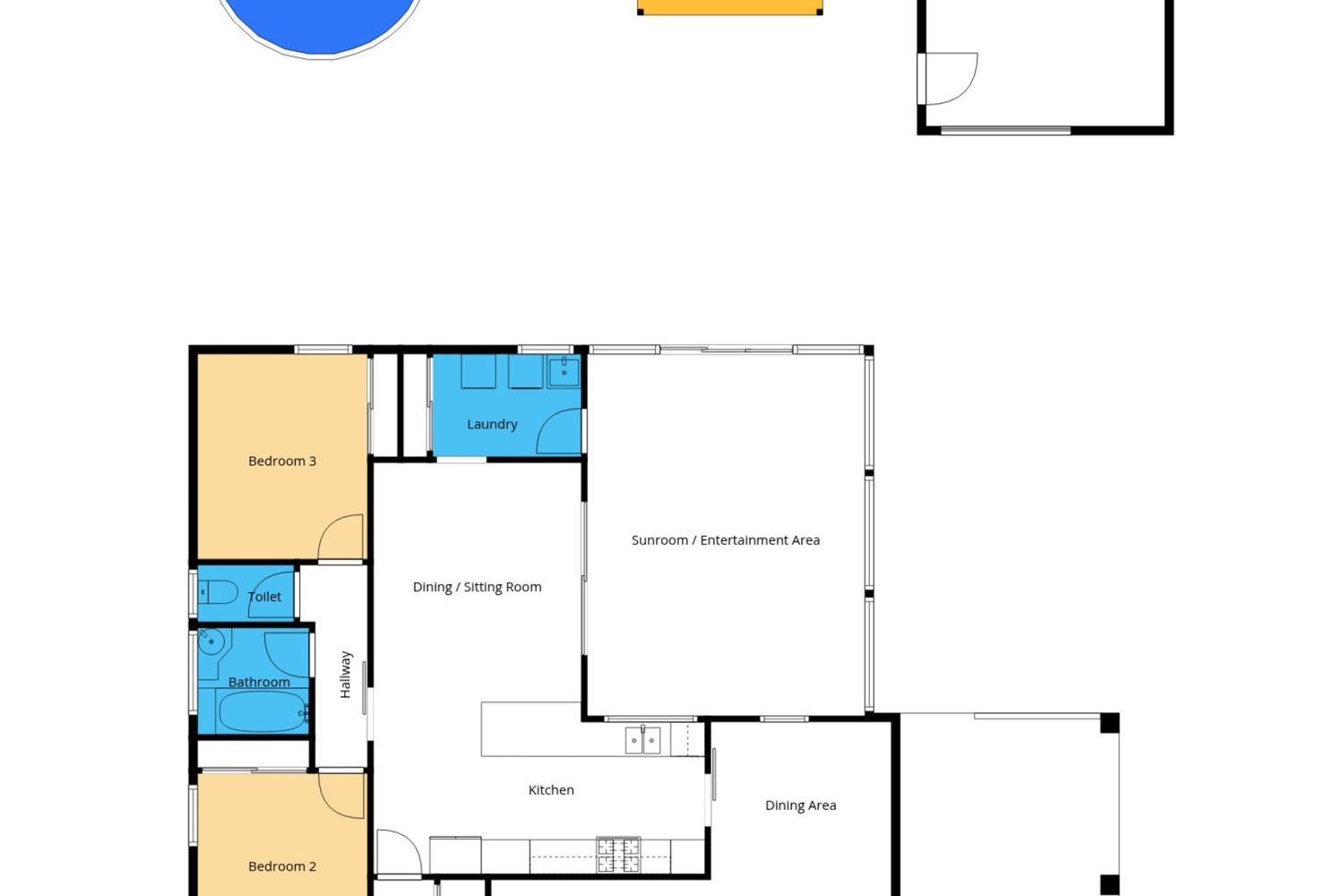 At the rear, an enclosed entertaining area/sunroom provides the perfect setting for relaxed gatherings or a peaceful retreat overlooking the backyard. Step outside and you’ll also find an inviting in-ground swimming pool, ready for some summer fun.