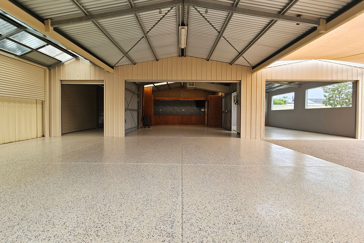 If you’re shed-obsessed, this will have you grinning. Boasting a massive 105m² of shedding, this setup includes three separate bays, ducted evaporative cooling, wood heating, and even its own toilet — ideal for tradies, hobbyists, tinkerers, or anyone needing serious storage or workspace.