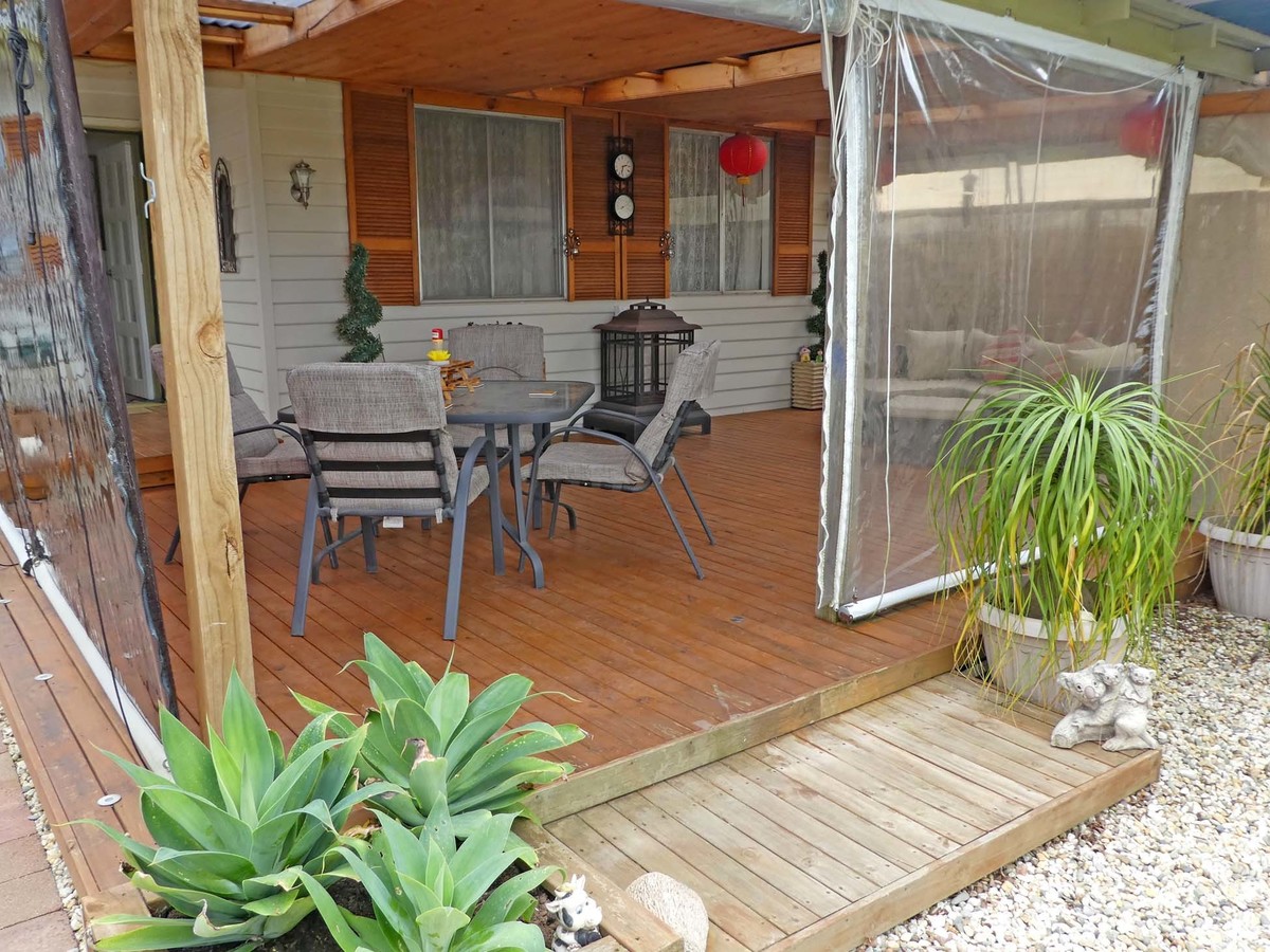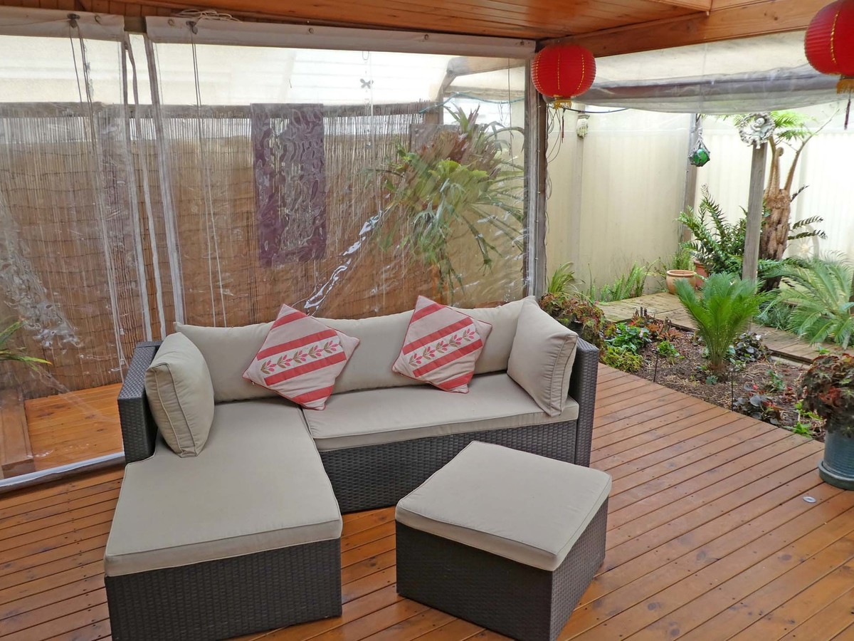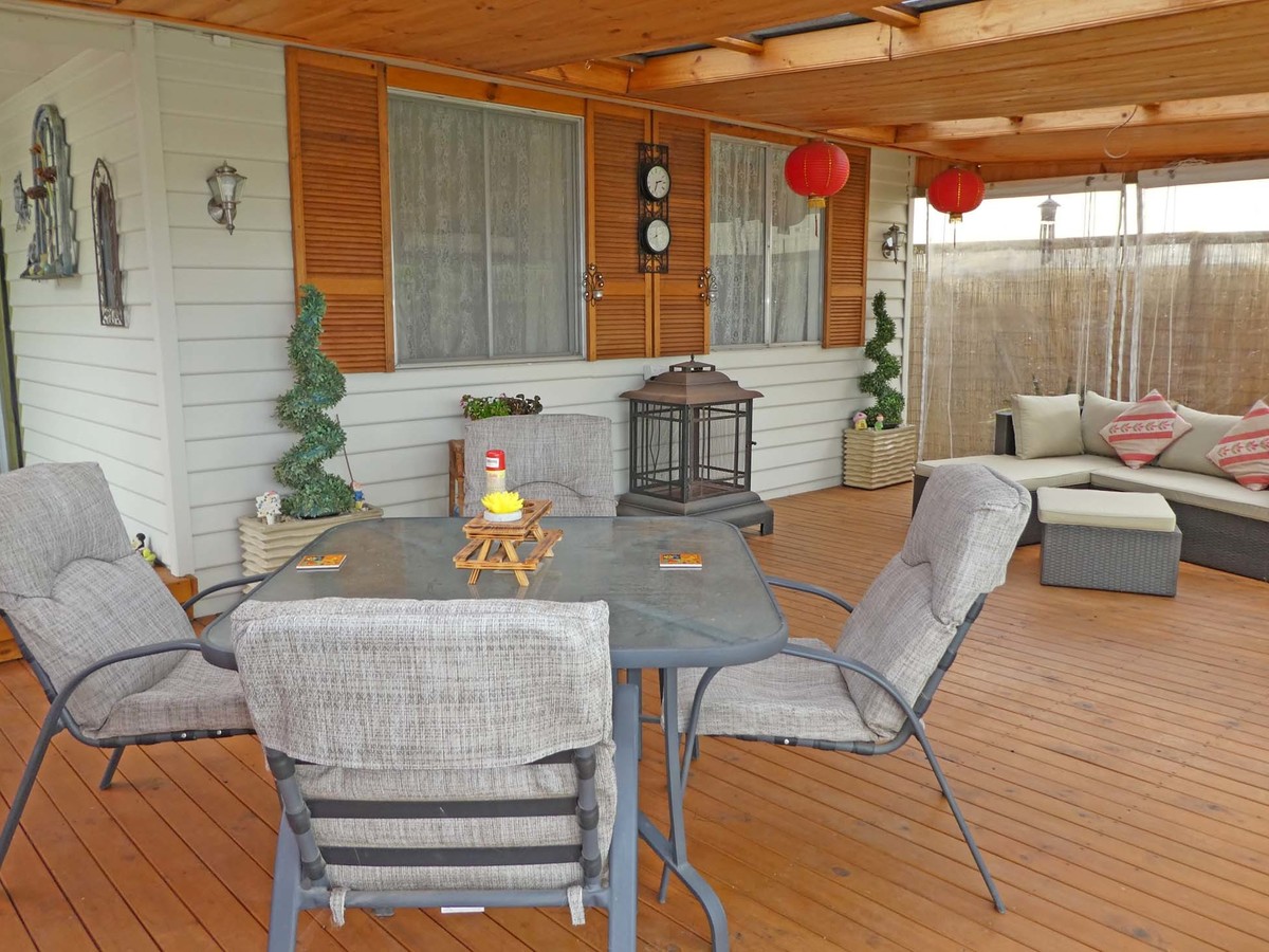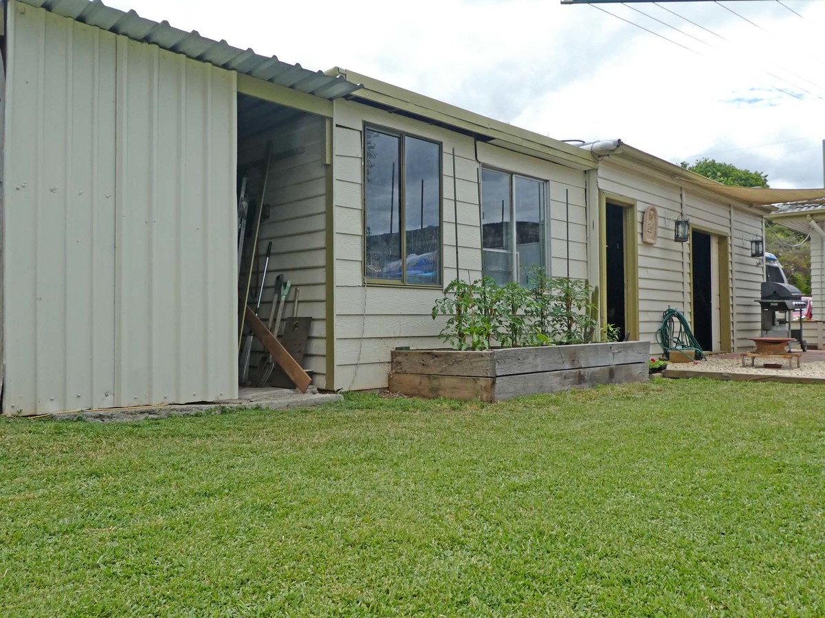 Enjoy outdoor entertaining with a welcoming decked pergola with fernery and roll down blinds plus a single lockable garage currently converted to a man cave with workshop