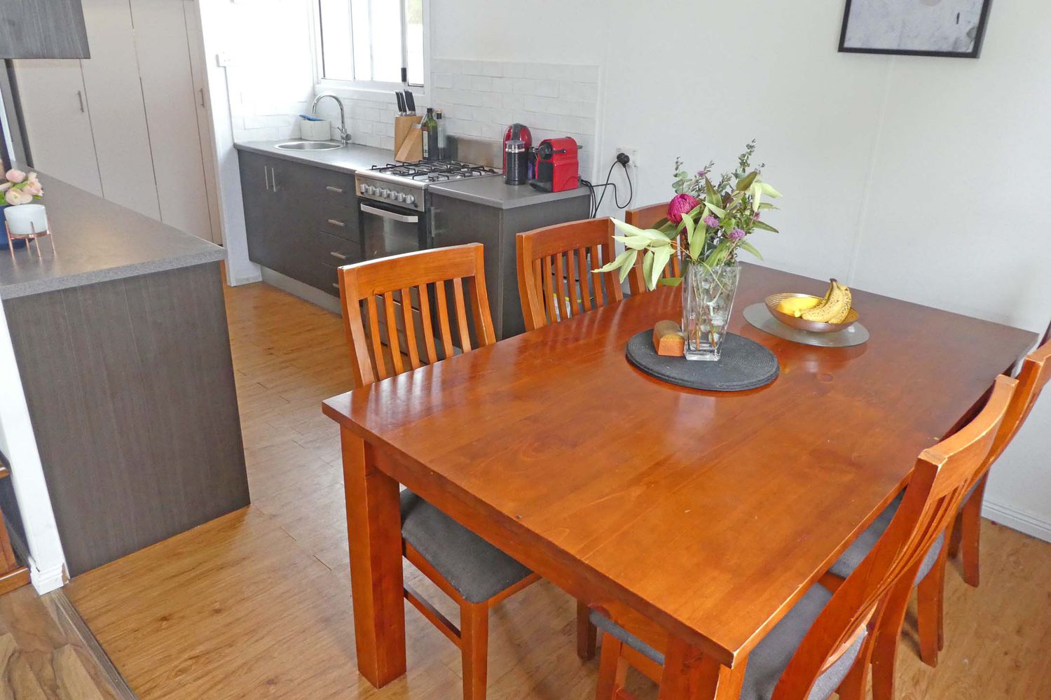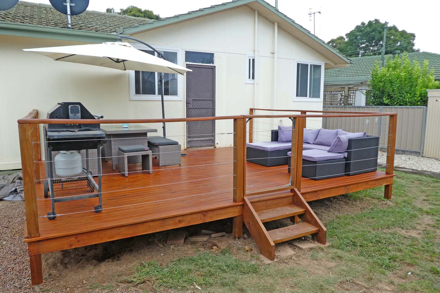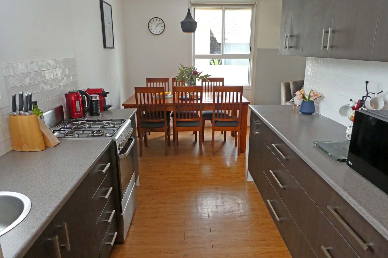 Outside is an inviting decked area overlooking the back yard with double carport, garden shed/workshop