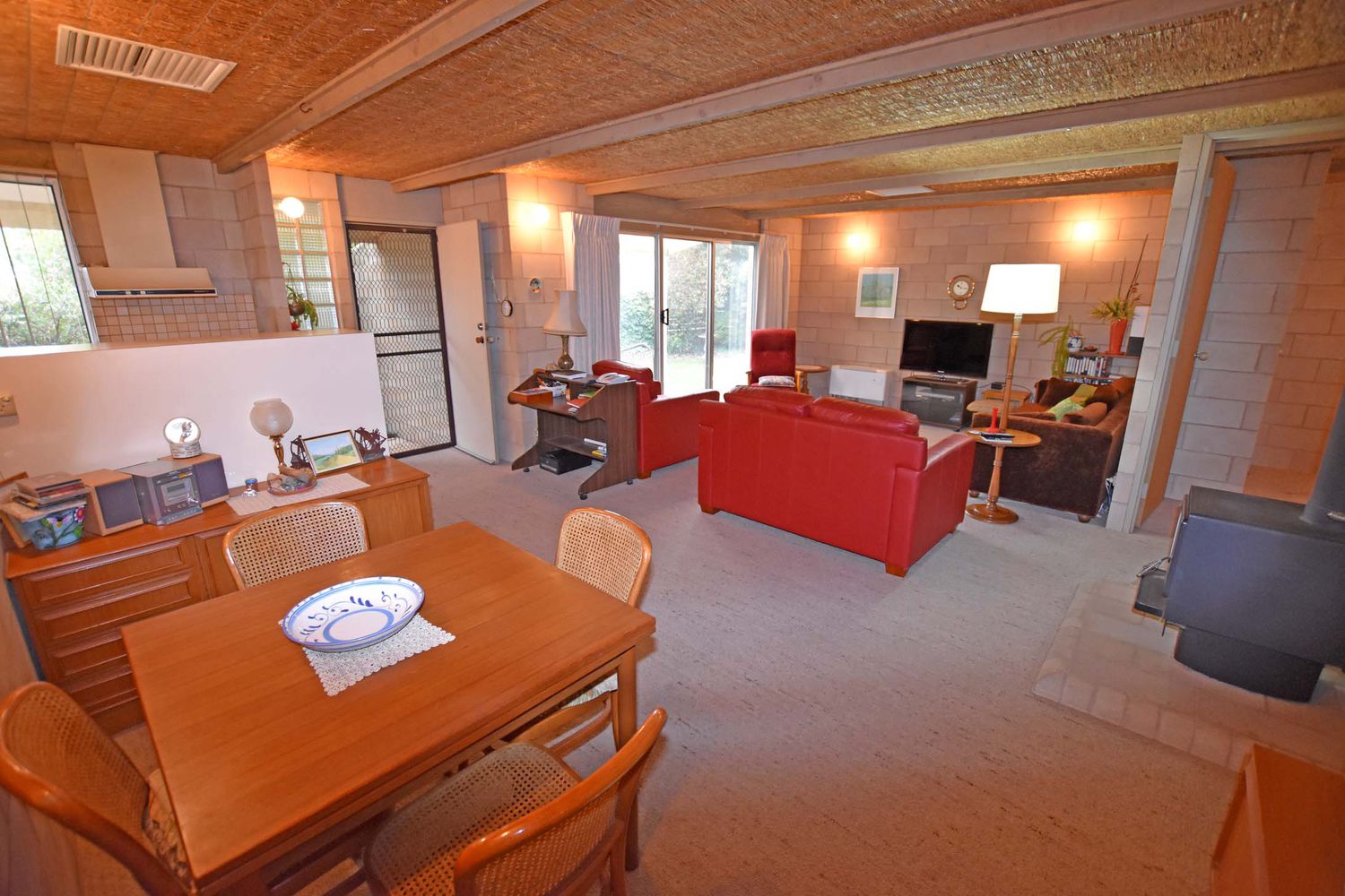 Oozing a cozy homely feel the open plan living has a northerly aspect and is comforted by gas and wood heating plus ducted evaporative cooling