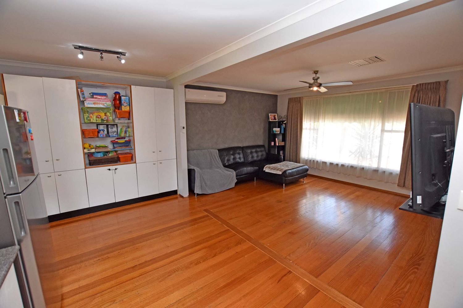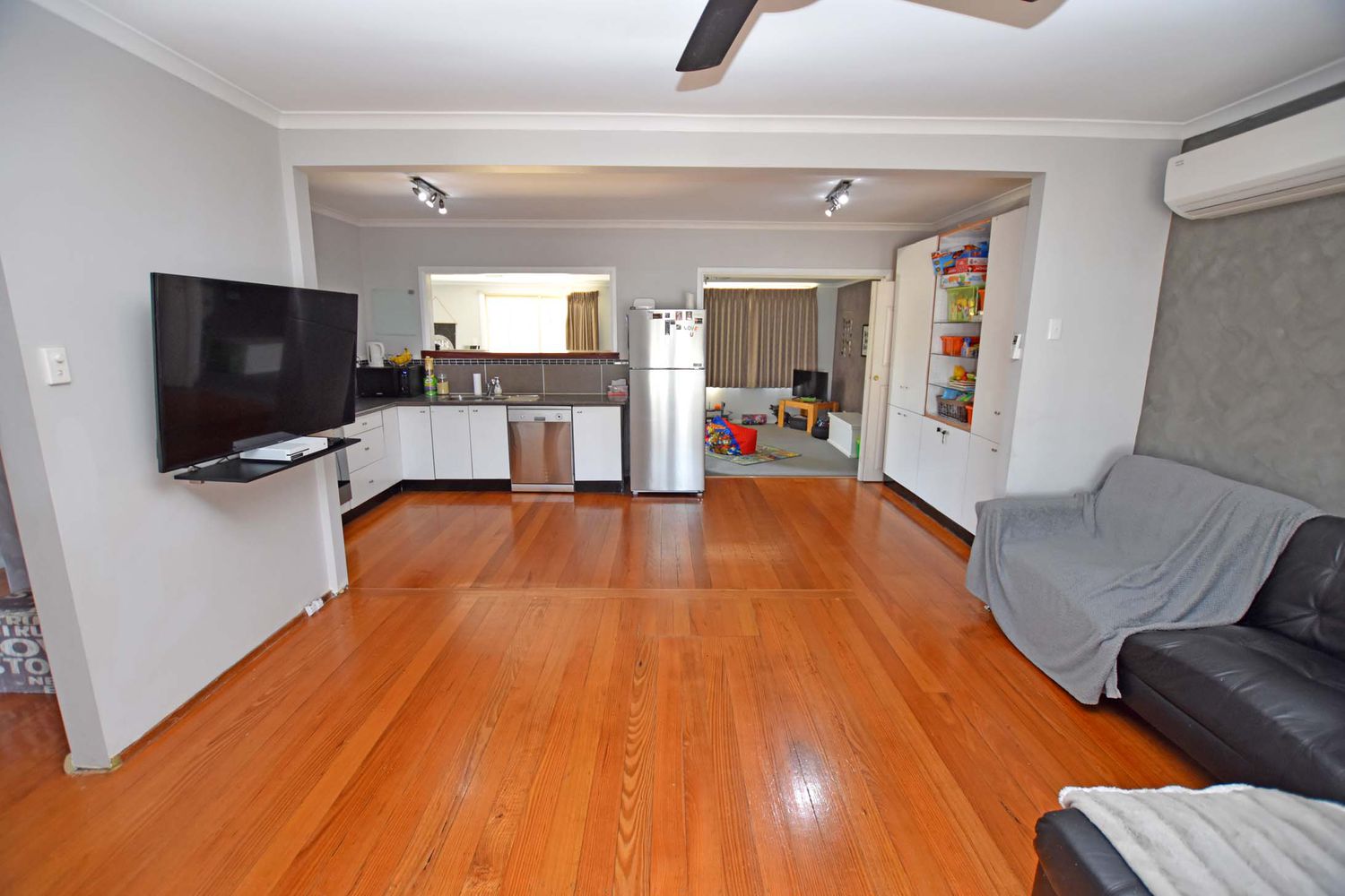 Featuring an open plan living area complemented by a modern kitchen and polished floorboards