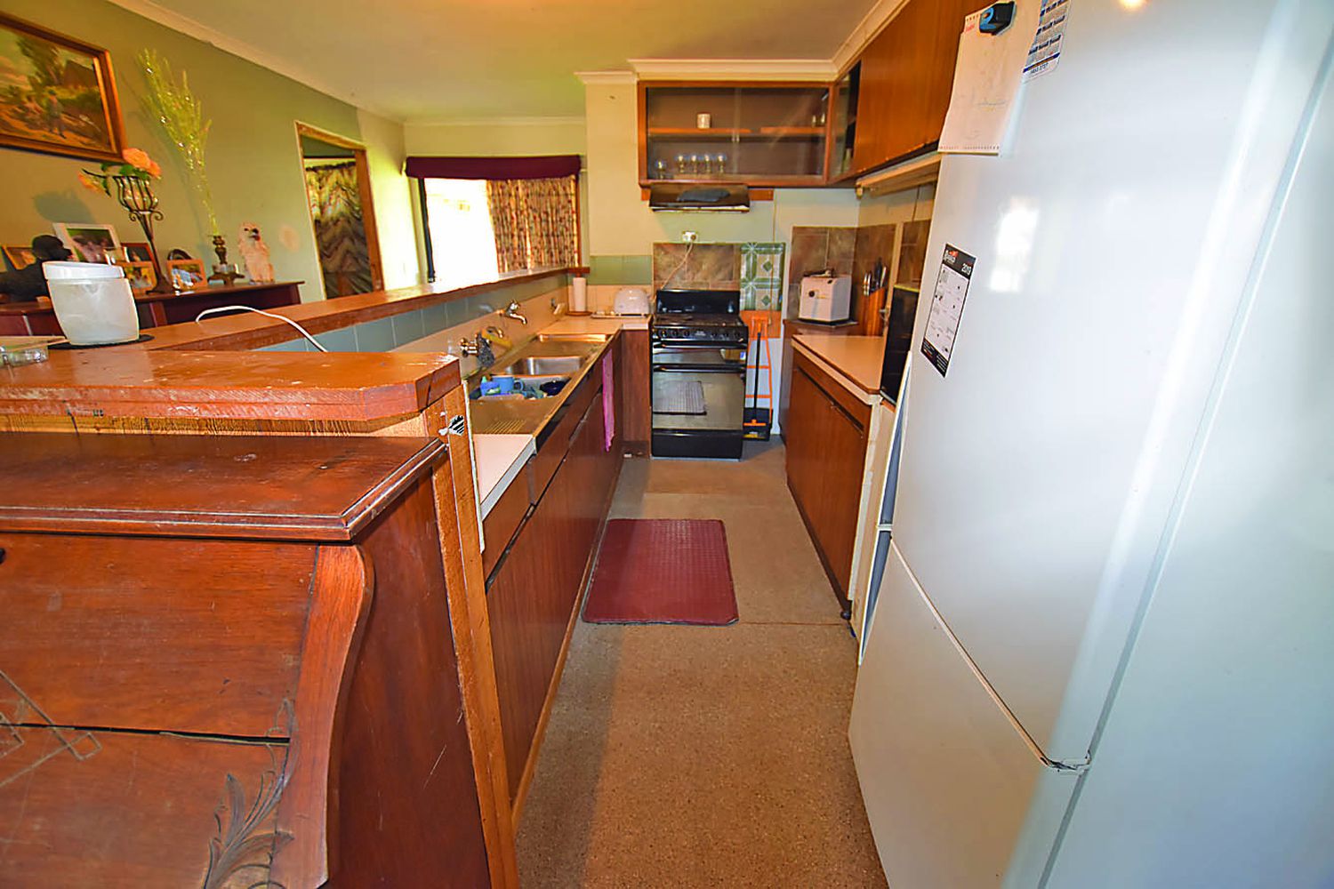 This partly renovated home features an open plan living area comforted by a split system reverse cycle air conditioner and gas heating