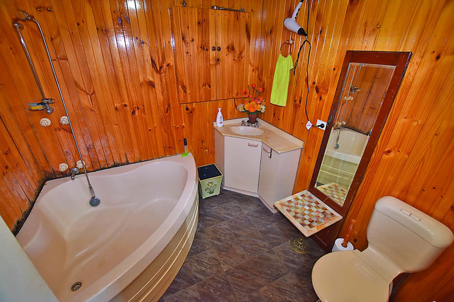 The bedrooms are of a generous size and the bathroom is pine lined