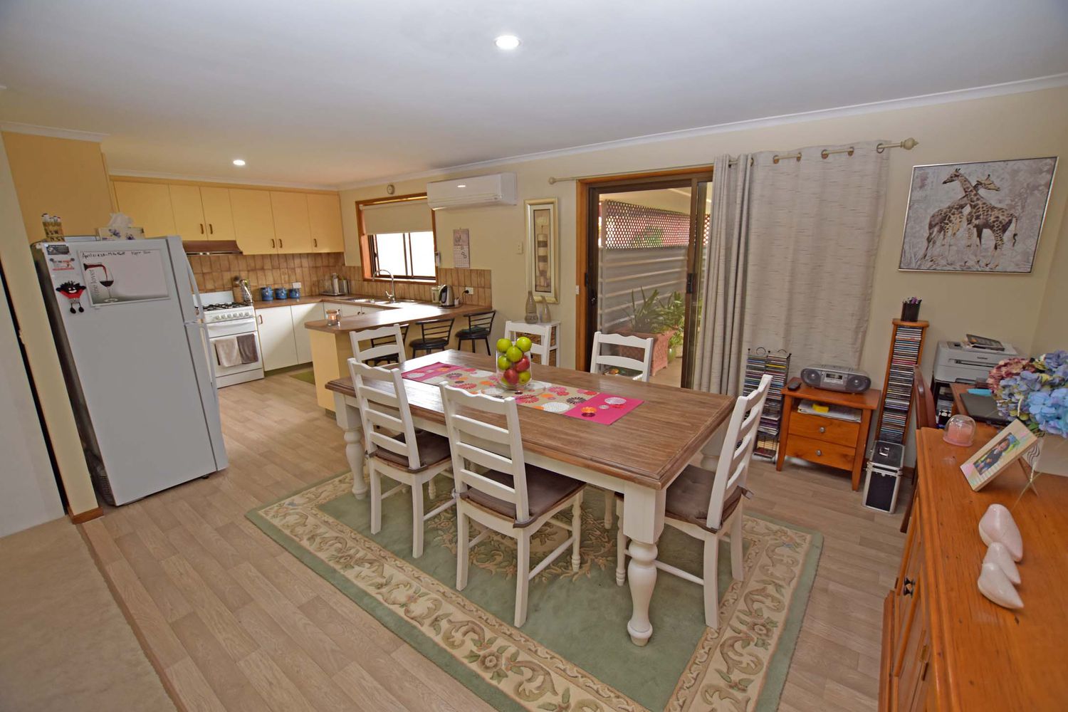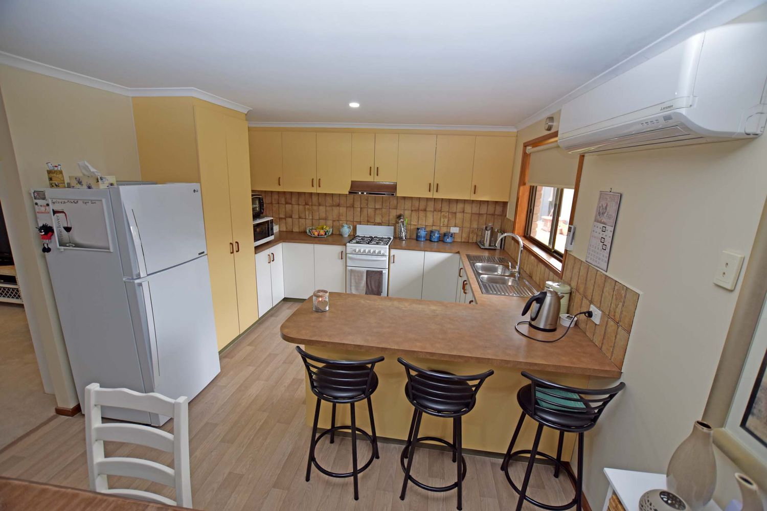 Comfort is further provided by split system reverse cycle air conditioner