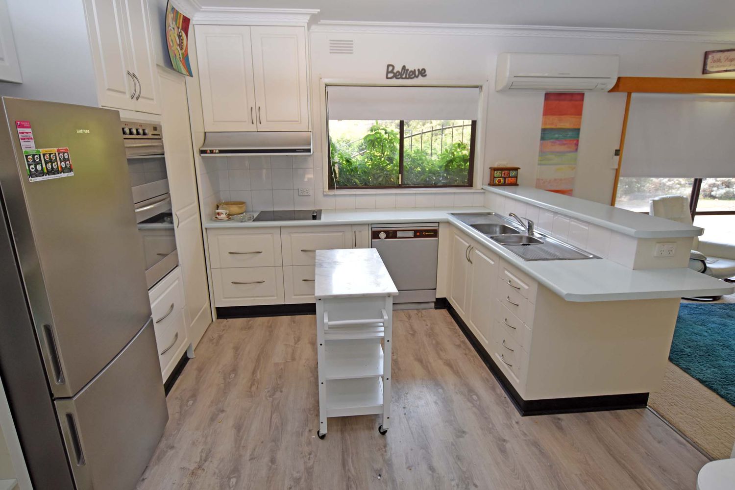 Comfort is provided by a gas log fire and split system reverse cycle air conditioner