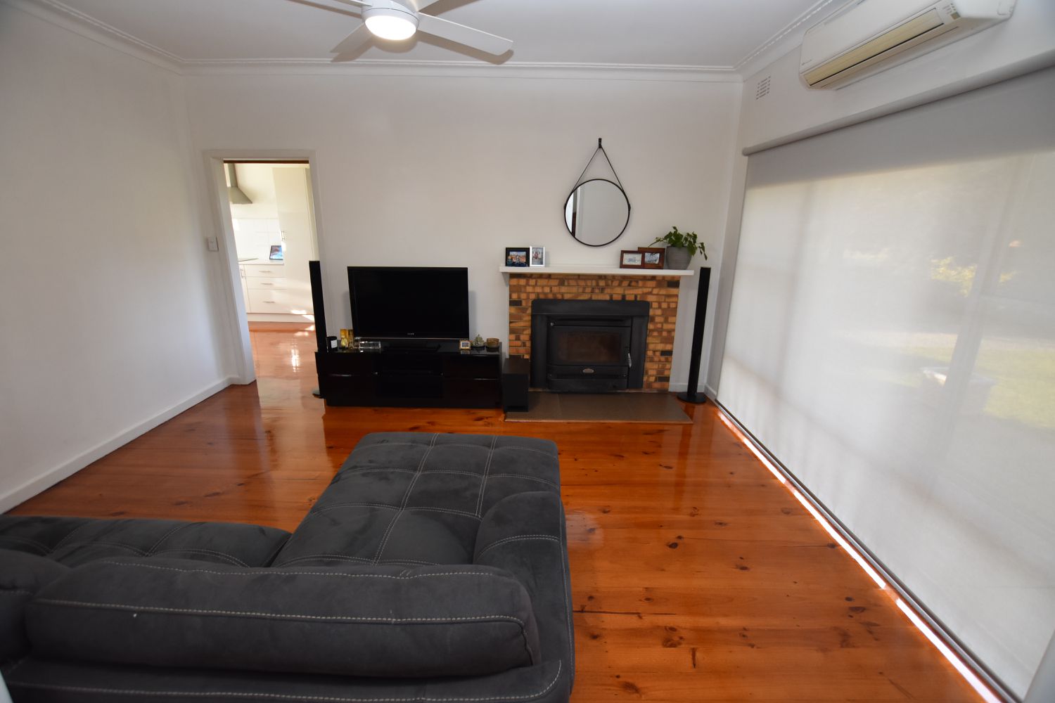 Offering plenty of natural light the home is comprised of a renovated kitchen, with accompanying meals area, comfortable lounge with split system reverse cycle air conditioner and cosy wood heating