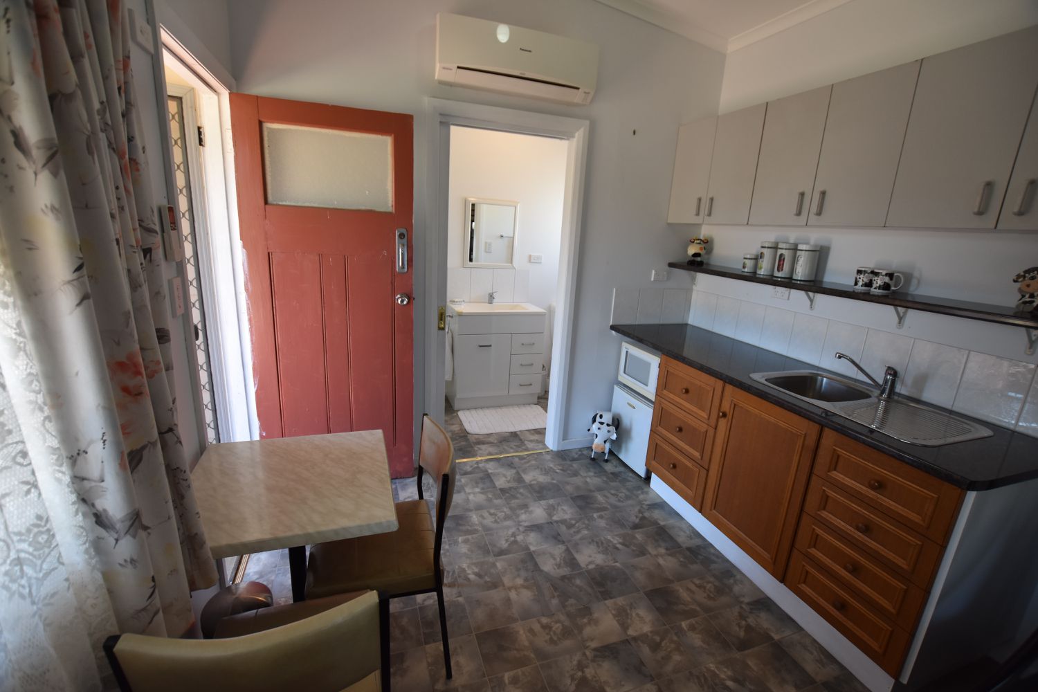 The property’s rear lane access is where it provides the flexibility of intended use as it also boasts a semi self-contained studio styled bungalow with split system reverse cycle air conditioner and bathroom facilities