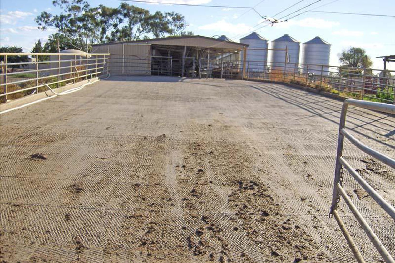 * Large concrete feed lot