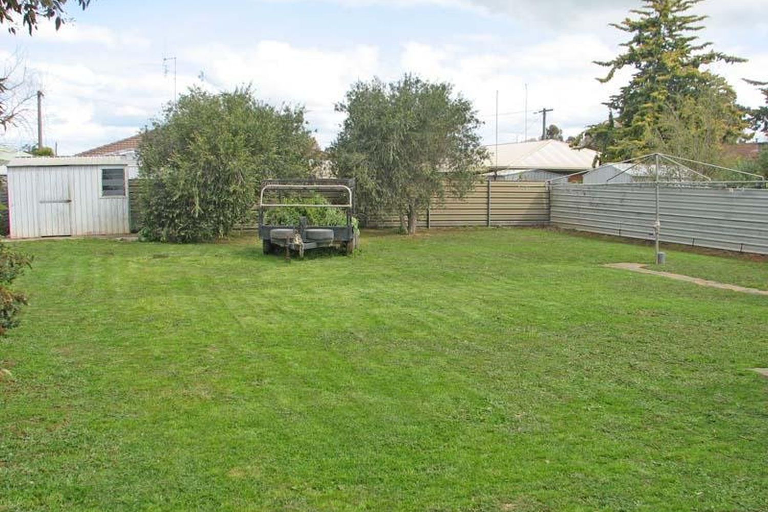 Carport, double gate access to back yard & storage shed