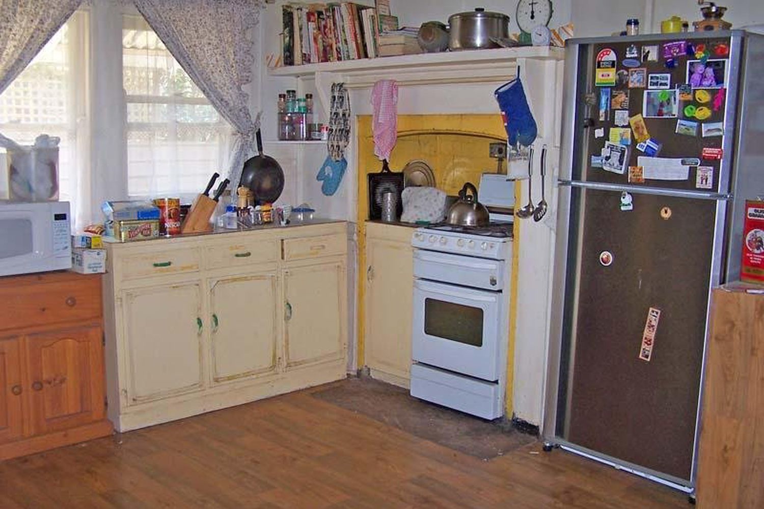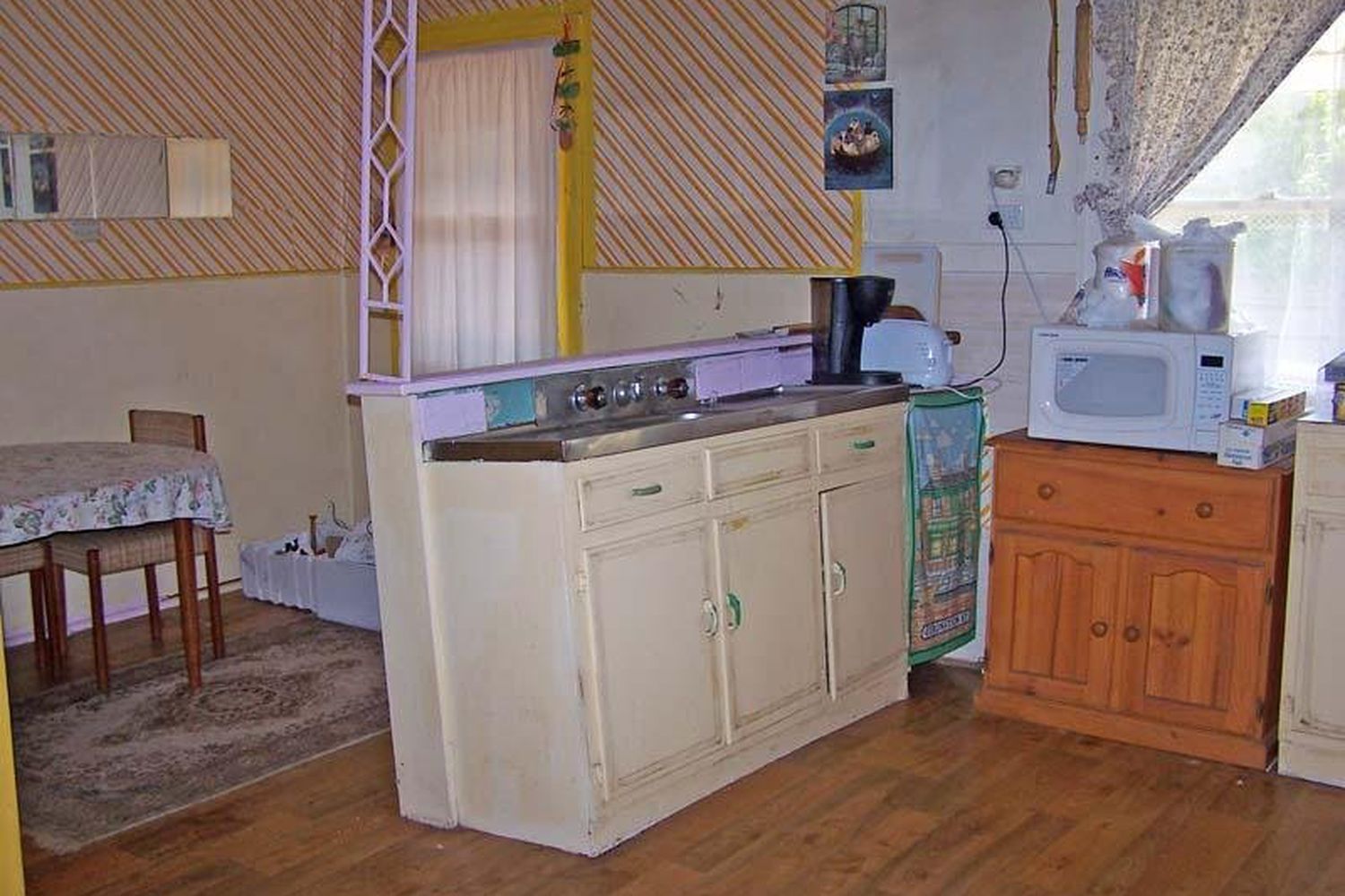 * Kitchen/meals area with gas stove