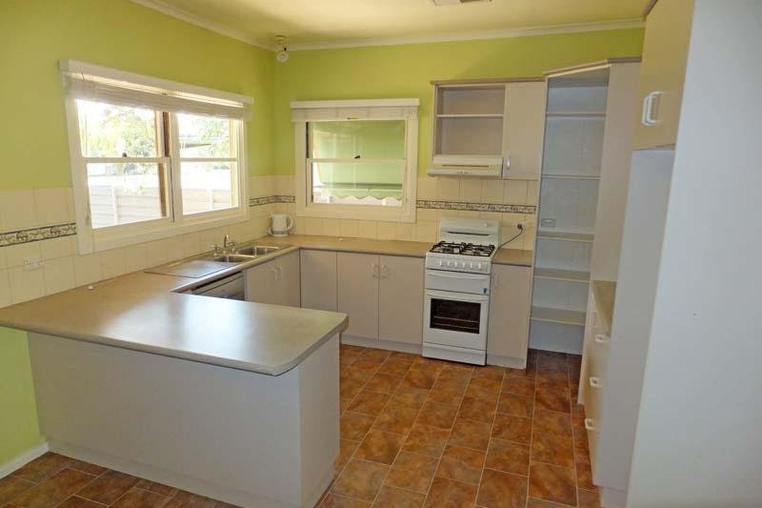 Neat kitchen & bathroom areas
