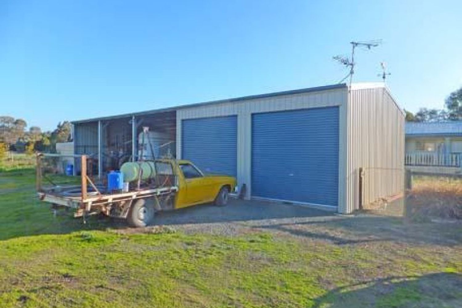 5 Bay machinery shed inclusive of workshop with concrete floor, power