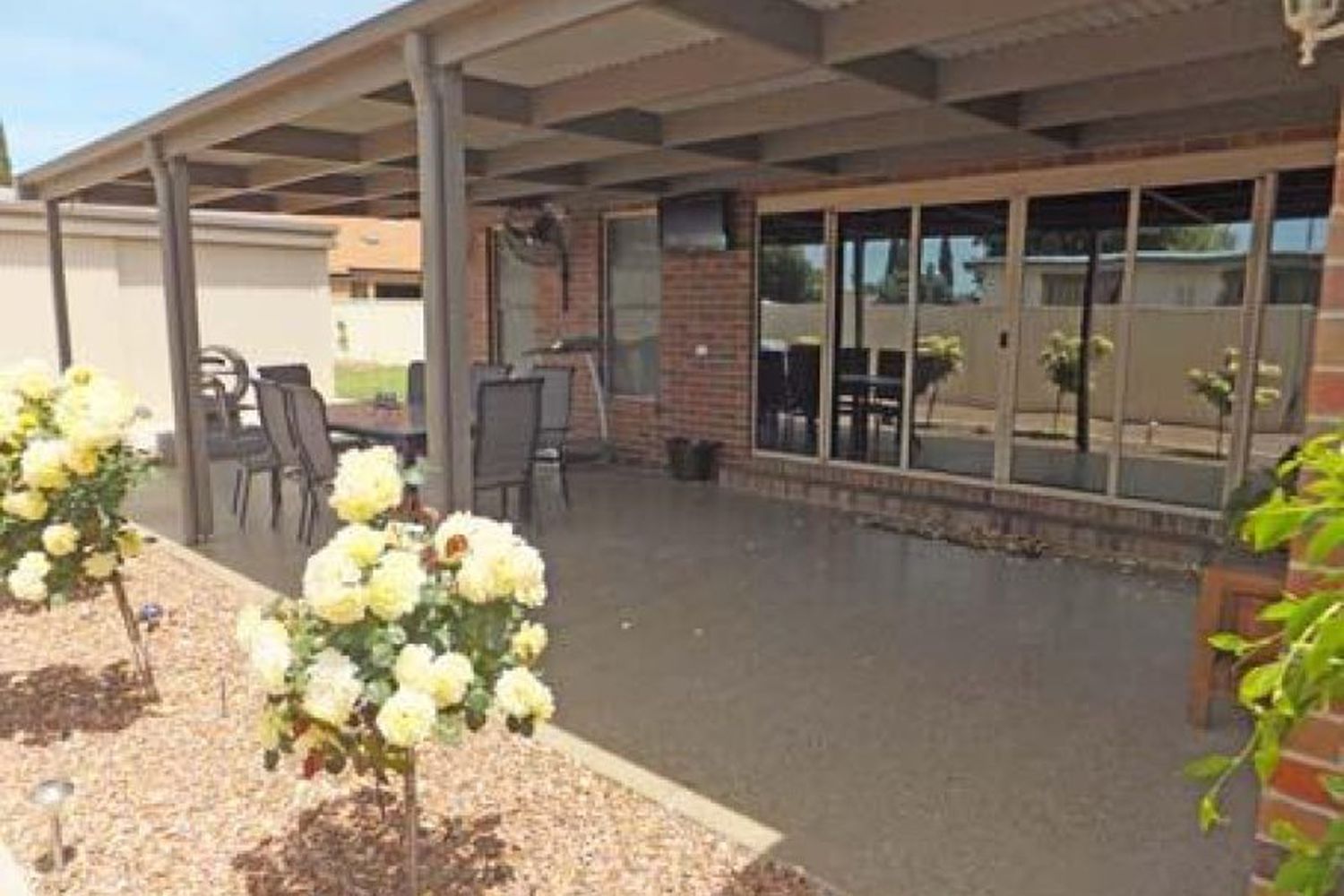 Outside is a large entertainment area, double auto garage & a