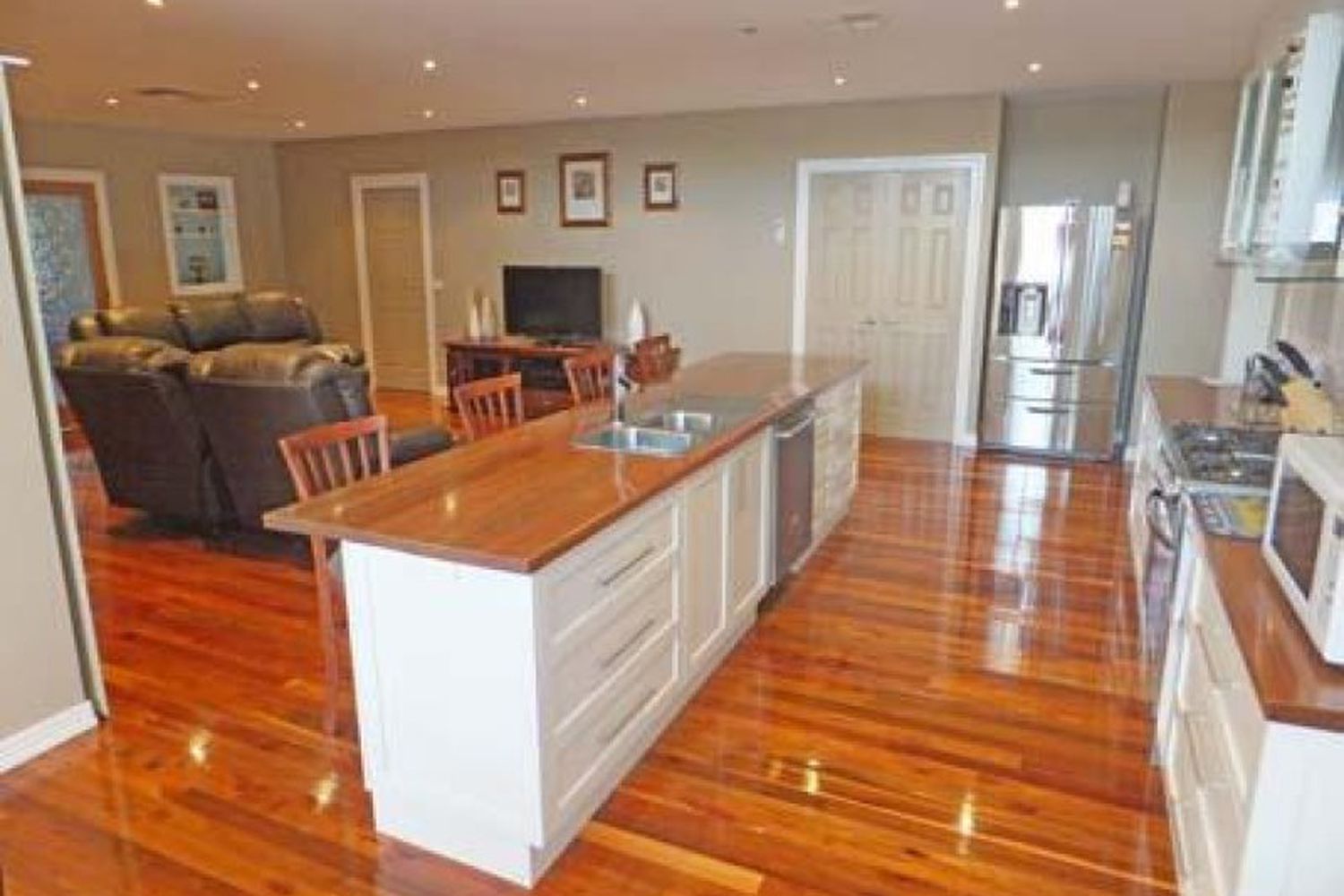 Highlighted by a stunning kitchen with spotted gum bench tops &
