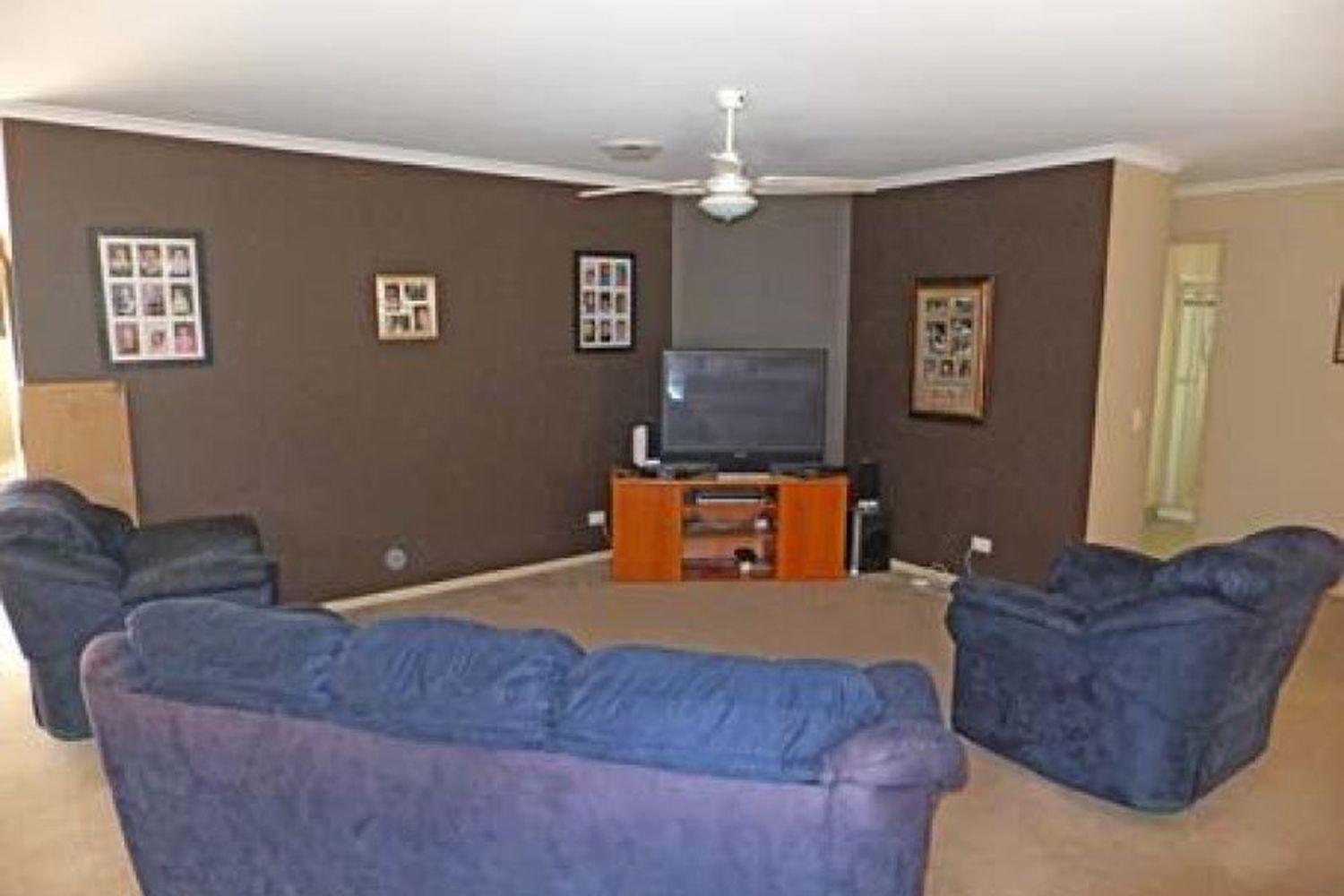 The open floor plan features 2 large living areas, 4 BRs plus study, 2 bathrooms and is comforted by ducted S/S R/C A/C