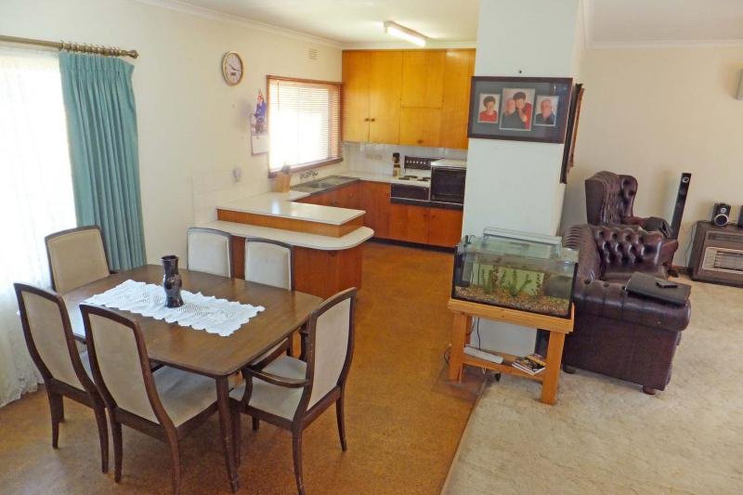 The large north facing area has gas heating & split system reverse cycle air conditioner
