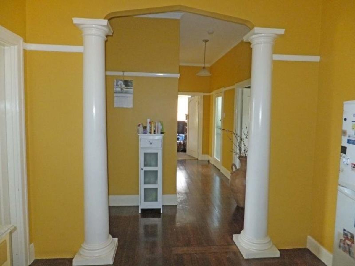 As you walk through the front door you can only be captivated by this homes features including polished boards, ornate ceilings and two huge columns opening into the kitchen area