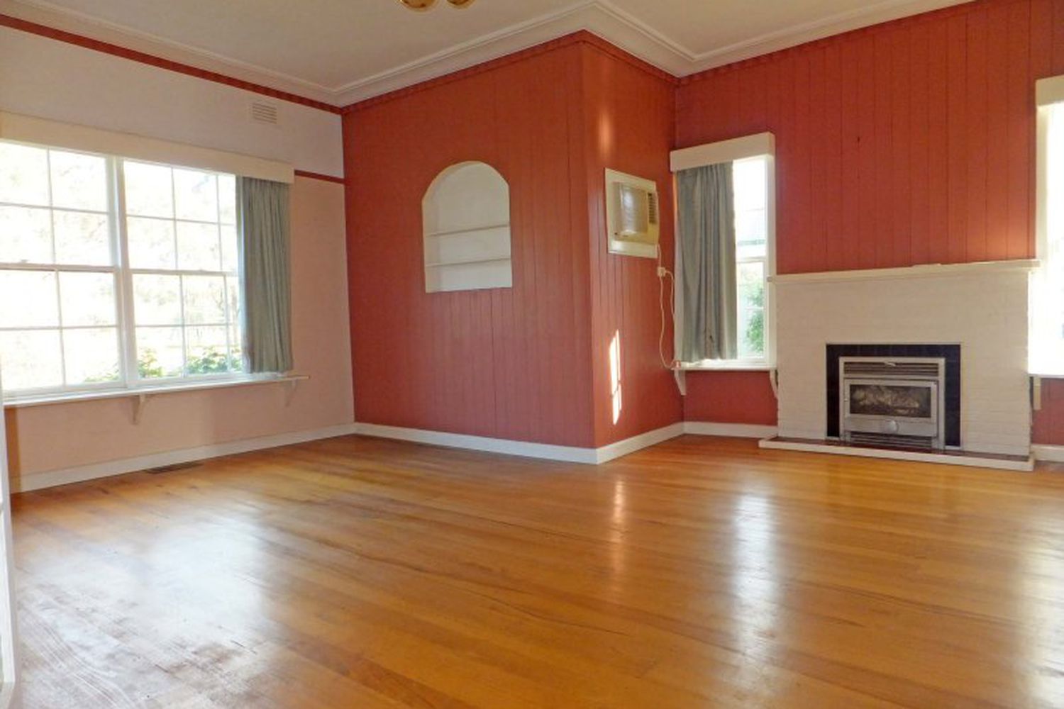 Large lounge with wood heater + reverse cycle air conditioner