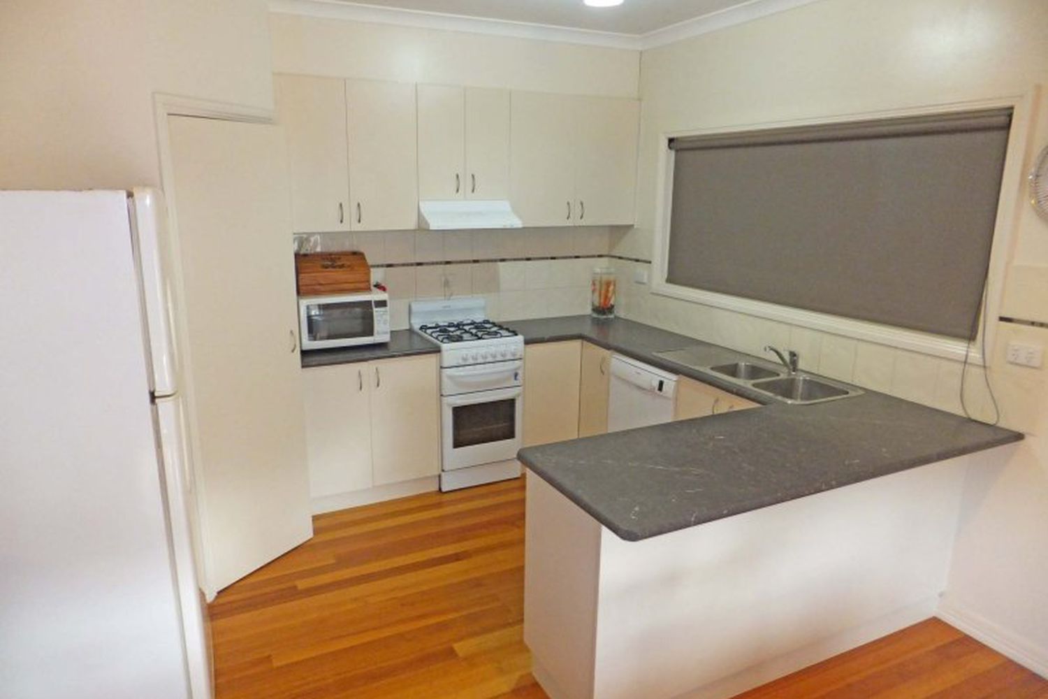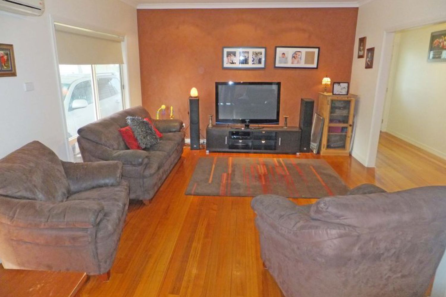 Open plan living is complimented by a modern design kitchen, gas heating & split system reverse cycle air conditioner
