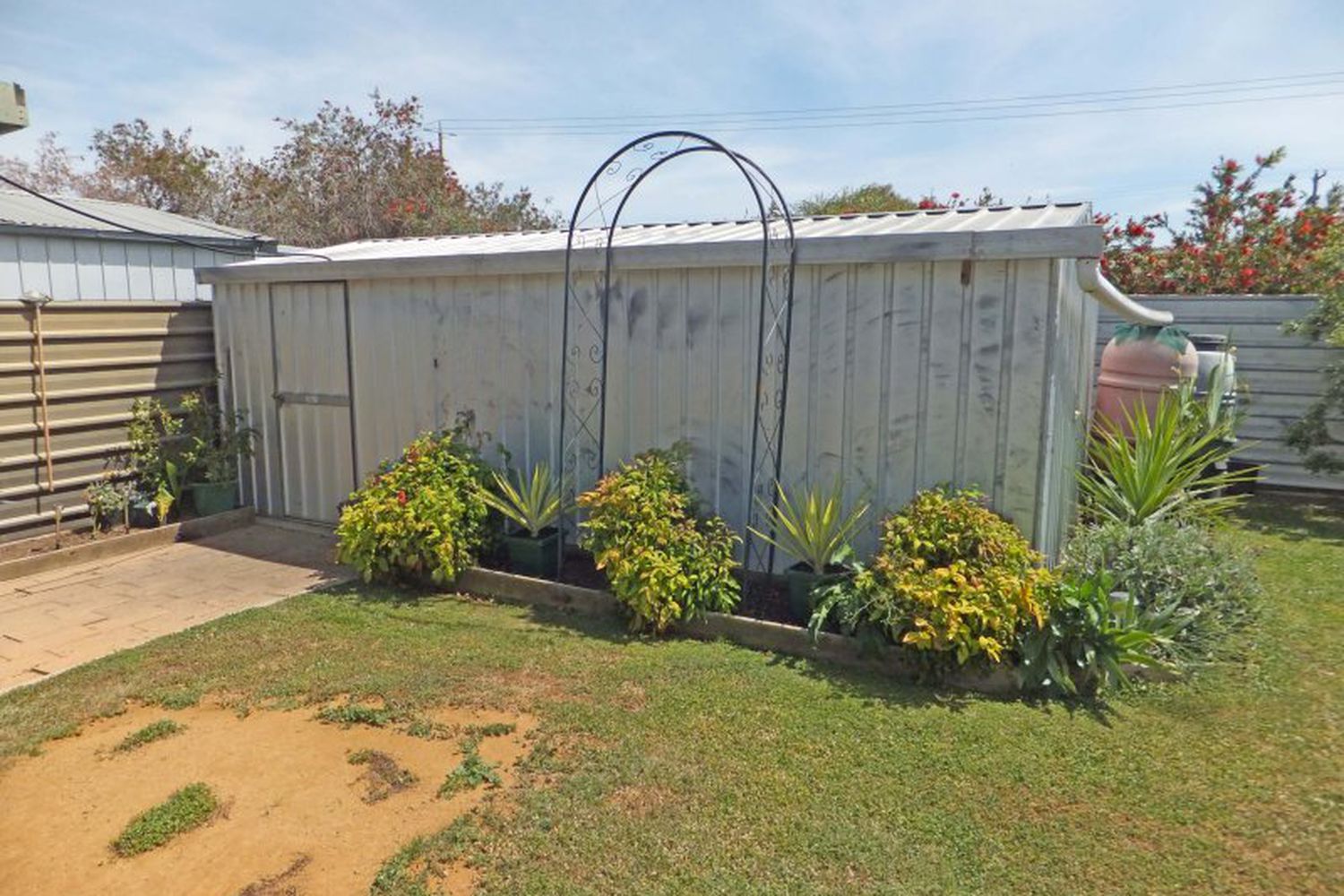 Double carport and garden shed