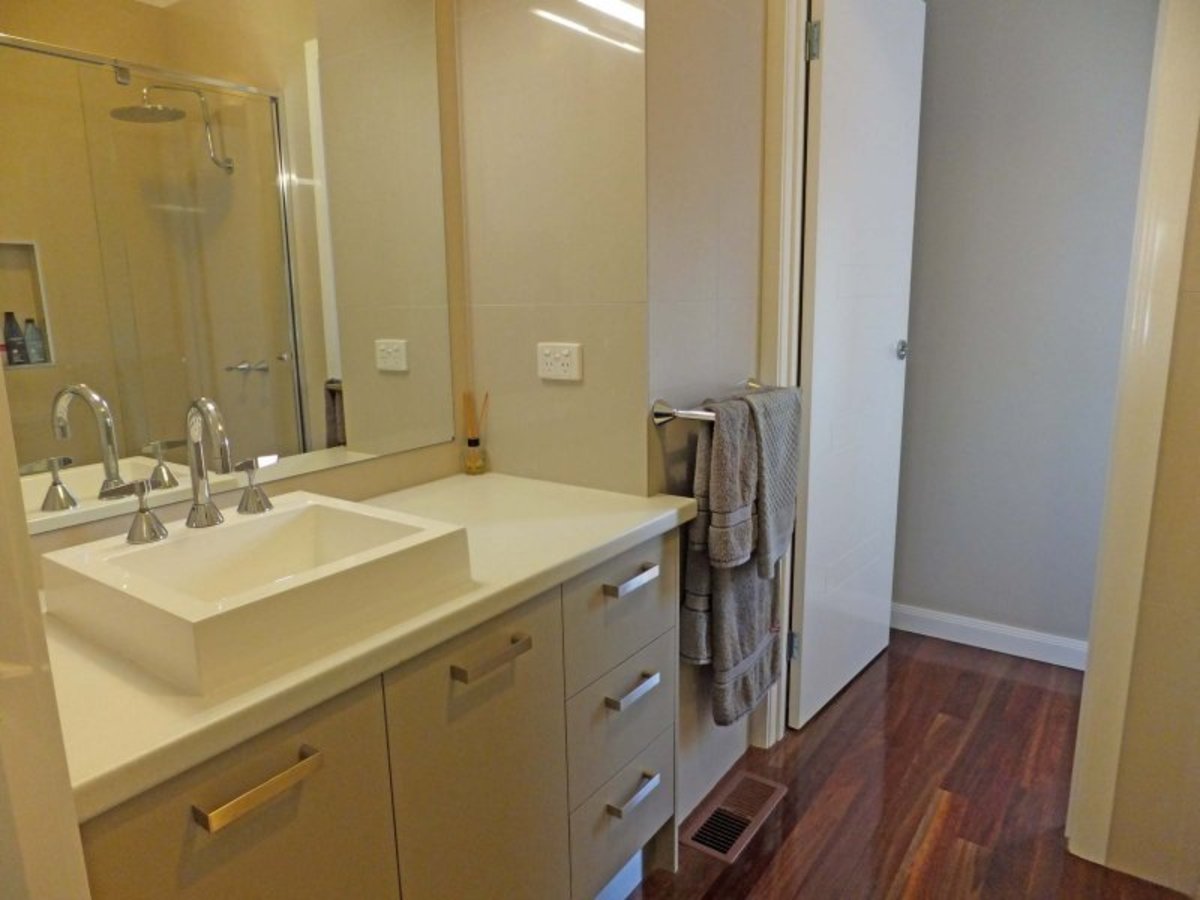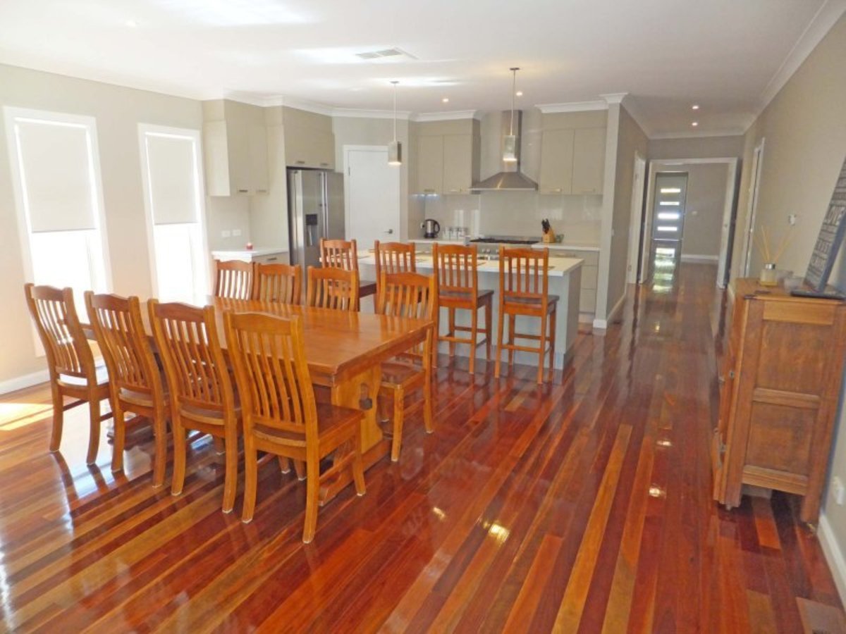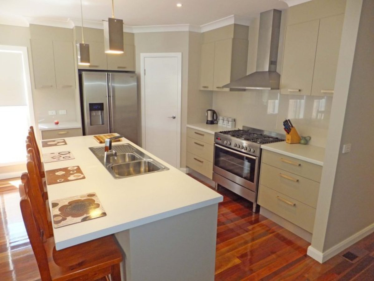 The stunning kitchen features a 900mm dual fuel stove while the ducted heating & cooling along with the spotted gum timber flooring throughout truly adds a classy finish