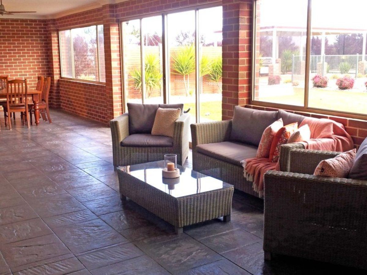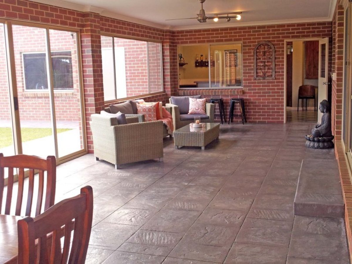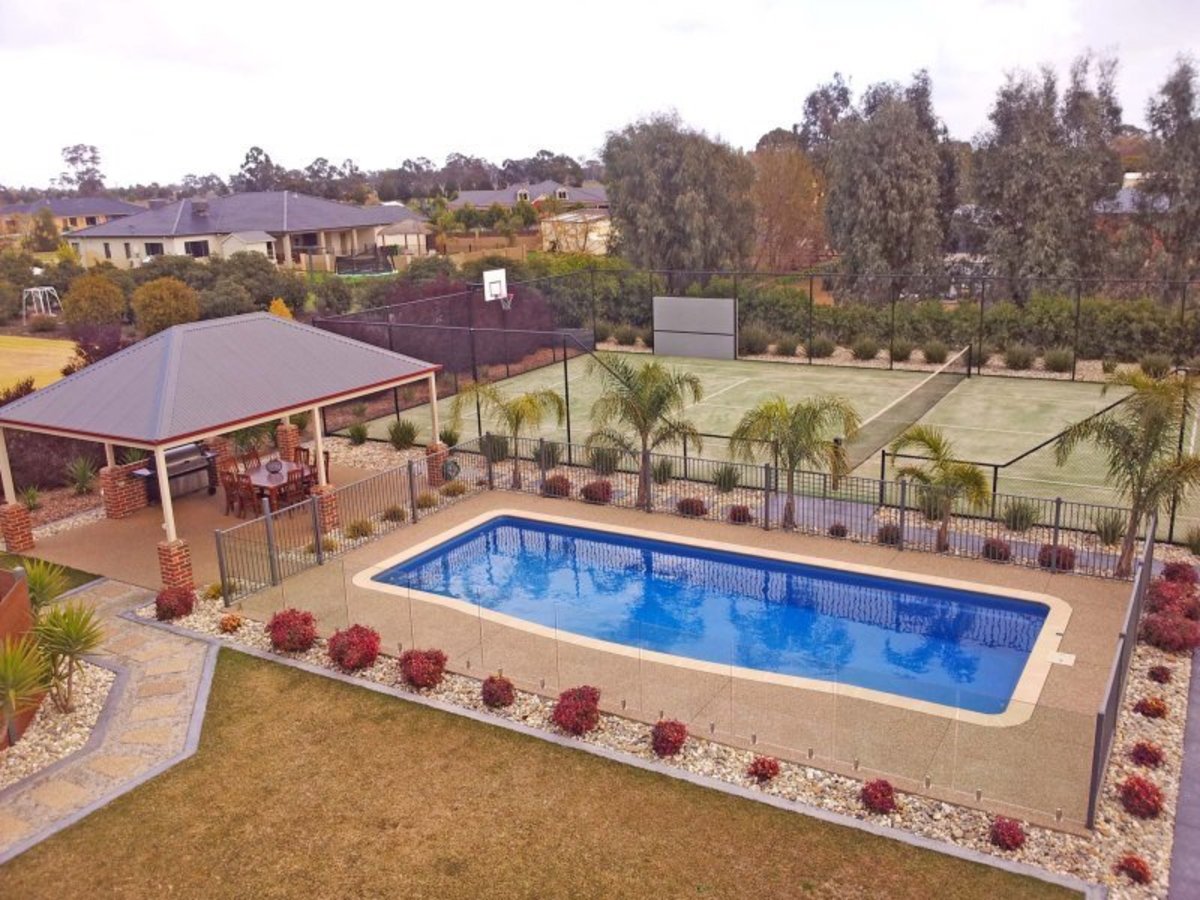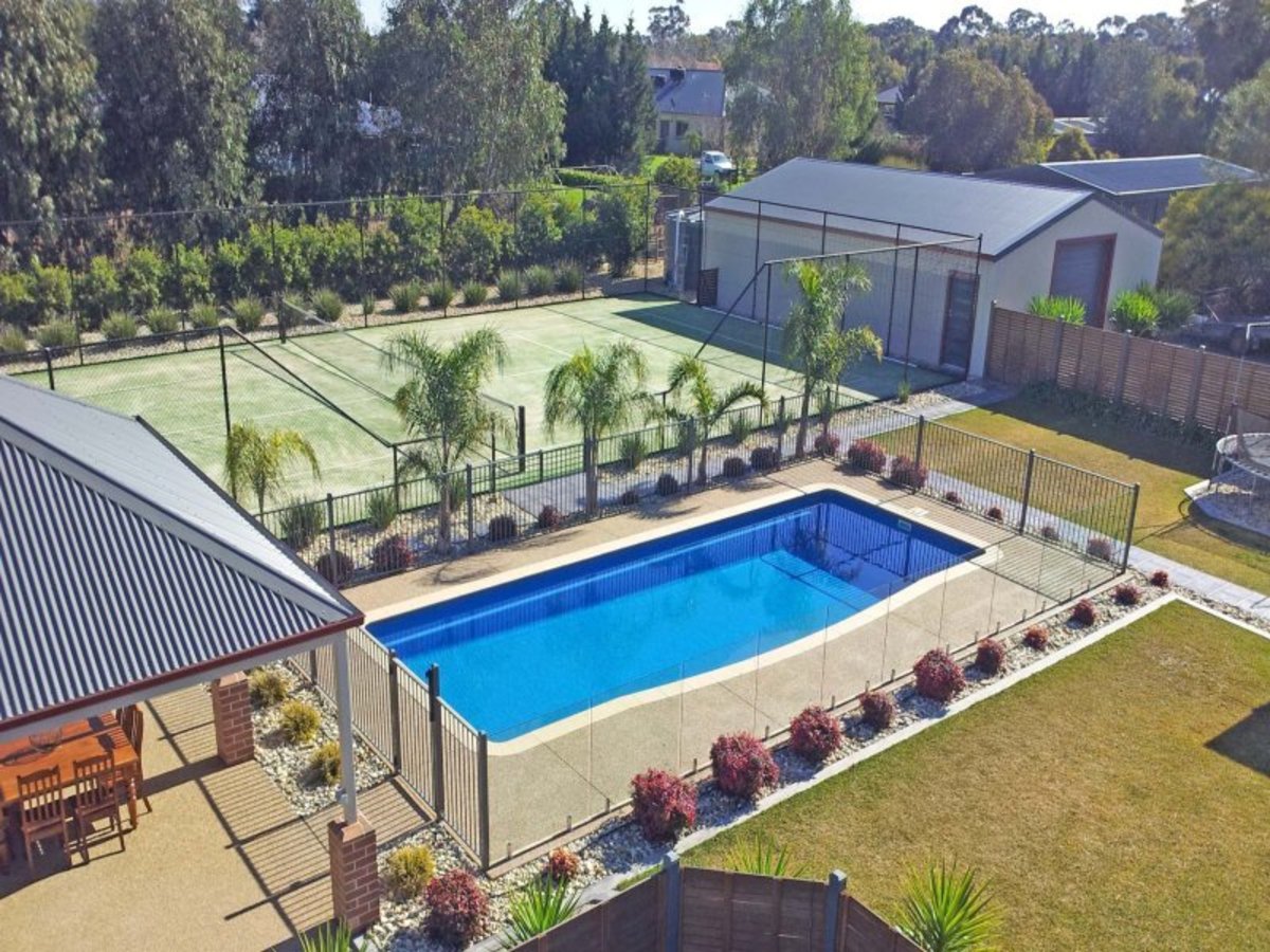 Entertaining is easy with the property’s fully enclosed alfresco area with adjoining bar room and 2 x double garages plus its separate free standing pergola that overlooks the solar heated in ground pool and tennis court