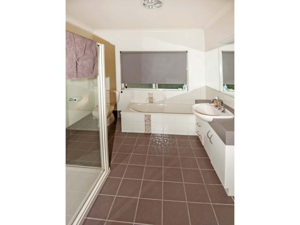 Newly renovated bathroom has been tastefully done with natural tonings that compliment the home